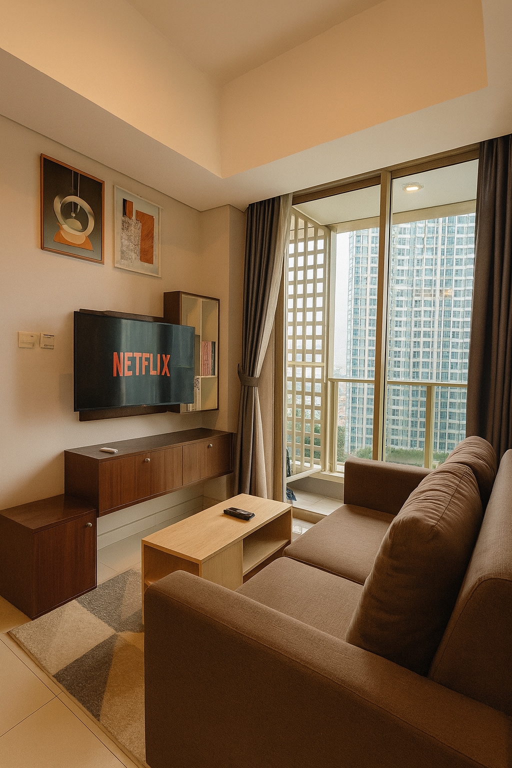 Professionally Managed by Kozystay Experience the charm of West Jakarta, with dining, shopping, and entertainment steps away. After a day out, unwind in a stylish 1 bedroom apartment featuring modern amenities and warm furnishings. Whether you're here for business or leisure, this peaceful space is perfect to recharge. AVAILABLE TO GUESTS: + Digital Check-in + Professionally Cleaned (disinfect) + Hotel Grade Amenities & Fresh Linens + Free High-Speed Wi-Fi & Cable TV + Free Access to Netflix