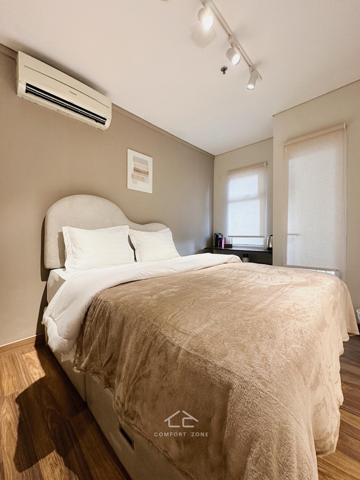 This newly renovated 1-bedroom loft apartment is located right above Neo Soho Mall and directly connected to Central Park Mall. Enjoy a spacious, open-plan layout with a cozy living and dining area on the first floor, complete with a dining table and kitchenware Upstairs, the loft-style bedroom features a king-size bed and an ensuite bathroom Amenities Included: -Fresh towels & toiletries -Dining set & kitchenware -Extra single foldable mattress and pillow -Netflix No access to Pool and Gym