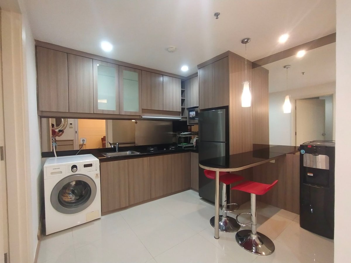 Experience comfort and style in our 2BR apartment located in the heart of Jakarta —just steps away from 4 bustling shopping mall (2 connecting malls). Designed for comfort for your family or travelling buddies, the apartment features a cozy yet stylish interior, high-speed Wi-Fi and five-star clubhouse for you to spoil yourself in.