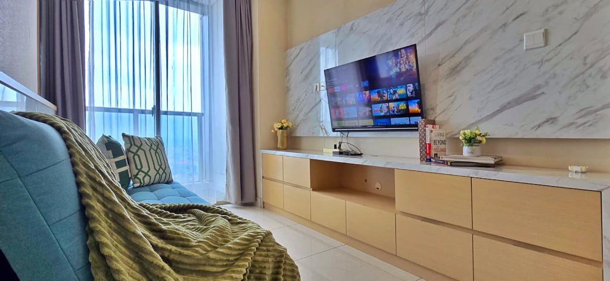 Experience comfort and style in our 2BR apartment located in the heart of Jakarta —just steps away from 4 bustling shopping mall (2 connecting malls). Designed for comfort for your family or travelling buddies, the apartment features a cozy yet stylish interior, high-speed Wi-Fi and five-star clubhouse for you to spoil yourself in.