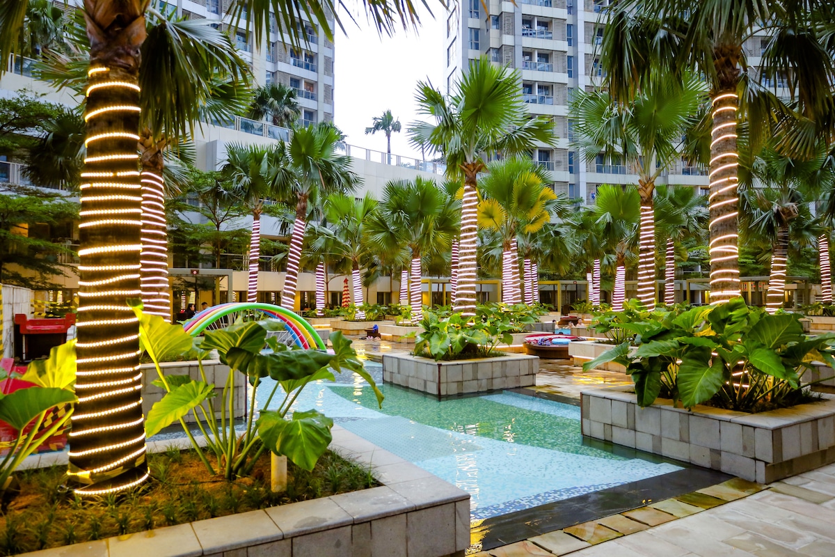 Retreat into a tranquil oasis where clean lines, natural materials, and a harmonious color palette create a sense of serenity. This thoughtfully designed Airbnb is a haven of simplicity and functionality, offering a peaceful escape from the urban bustle. With direct access to Central Park Mall, you’re just a few steps away from a world of shopping, dining, and entertainment. Whether you’re in the mood for a shopping spree or take a walk in Jakarta Aquarium, everything is at your doorstep.