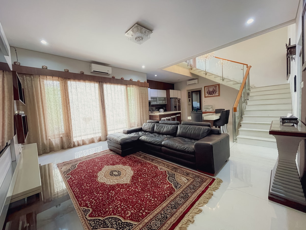 Designed as our getaway home with green surroundings and fresh air, quiet yet very accessible - With toll road access 5 mins away from the area (The Green). We would like to welcome you to our safe haven, designed and filled with love! Our passion for traditional Javanese art and interiors are expressed throughout the furnishing of the house showcasing the true roots of our Central Java family. Connect with us through instagram @rumaharula we’ll be more than happy to answer your queries!