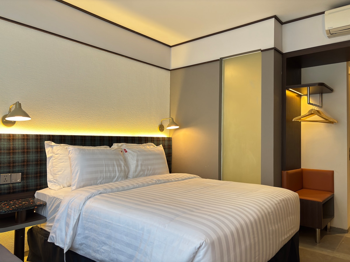 Amapiano — Base Room ±19 sqm | Up to 2 Guests | Queen Bed A comfortable room designed for solo travelers or couples seeking a simple and restful boutique stay. The Amapiano room combines efficient design with a calm and cozy atmosphere. Amapiano Unit Arrangement • Queen Bed (160 × 200 cm) • Private bathroom with shower • Compact and functional layout