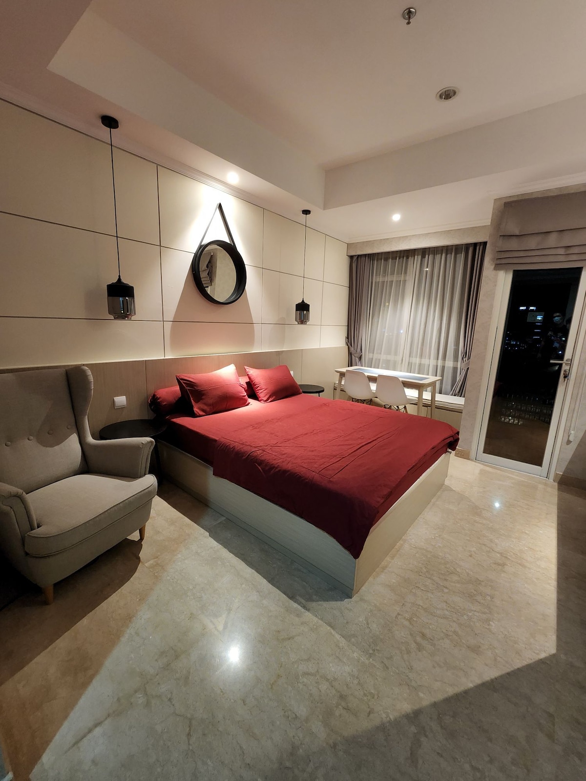 A 33 sqm fully furnished studio located in the Menteng area, Central Jakarta, offering a beautiful city view from the top floor. Conveniently situated near Sudirman–Thamrin, Kuningan, Bundaran HI, Grand Indonesia, Metropole, and Gambir, and just a few minutes walk to Surabaya Antique Market and Taman Ismail Marzuki. NO SMOKING IN THE ROOM/BATHROOM/BALCONY FREE UNLIMITED INTERNET ACCESS IN THE ROOM