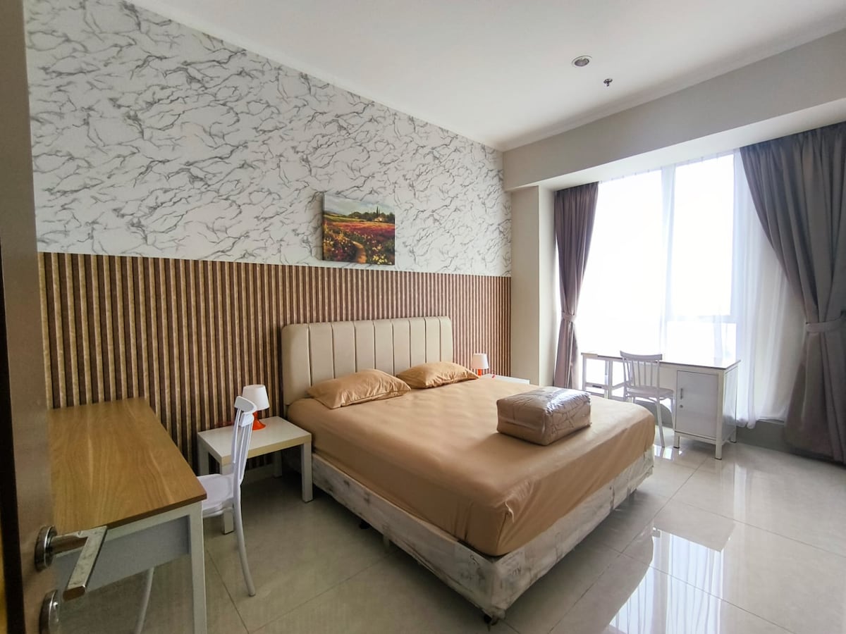 Apartment ini di design dengan minimalis namun kenyamanan tetap terjaga, dekat dengan Universitas dan juga dekat dengan pusat perbelanjaan Fasilitas yang dimiliki pun sangat lengkap, sperti: kolam renang, taman gantung, gym dan juga jogging track Bermalamlah ditempat kami, dan dapatkan kenyamanan istirahat yang maksimal untuk Anda dan keluarga