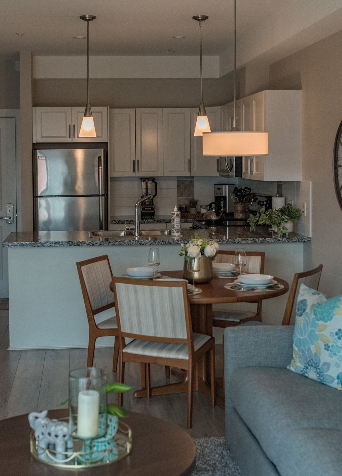 NO Cleaning Fee! Enjoy this bright 2-bed/2-bath condo in the heart of Kelowna. Sleeps 6 with a king, queen, and queen sofa-bed. Cook in a full kitchen, relax by the gas fireplace, stream Netflix on the large TV, or sip morning coffee on the balcony. A very walkable neighbourhood with nearby parks, beaches, wineries, breweries, shops, and restaurants. Free self check-in, secure parking, in-suite laundry, central heat/air, and high-speed WiFi. 2 pools with hot tubs, one open year round!