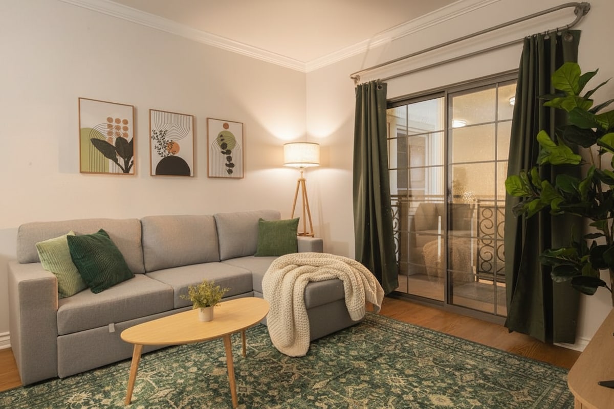 🌟 Elegant Modern 1-BD Retreat in Santa Monica 🌟 Escape to a sleek 1-bedroom apartment with proximity to the beach. This stylish space features a cozy queen bed 💑, modern decor 🏡, and a fully equipped kitchen 🍳. Enjoy high-speed Wi-Fi 📶, a smart TV 📺, in-unit laundry 🛠️, and secure parking 🚗. Perfectly located near dining 🍽️, shopping 🛒, and coastal adventures 🏖️—your ultimate getaway awaits!
