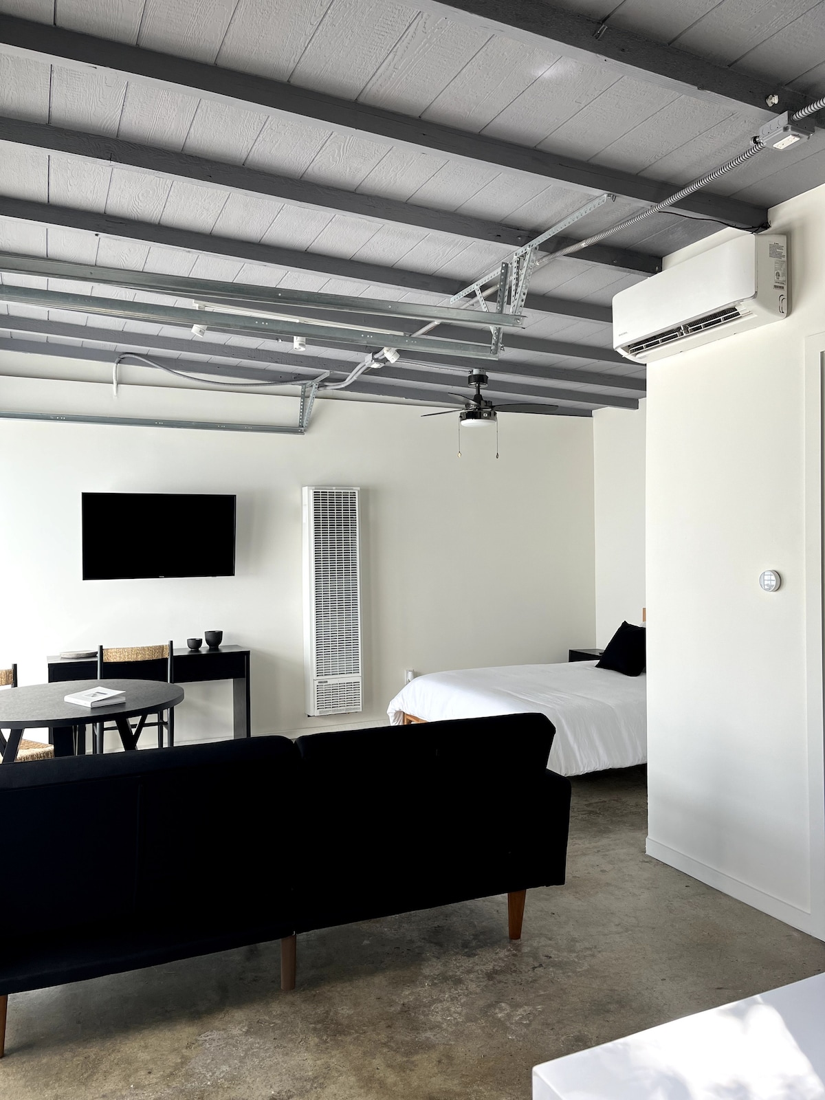 Welcome to the Modern Venice House! This cozy private space is in an extremely quiet location in Venice with updated decor in 2025. It includes everything provided by a hotel room, including kitchenette, bathroom, heat/ac, bedroom/living room and polished concrete floors that are all new and ready to be enjoyed. The space includes high-end opaque glass doors that let in lots of light but provide privacy. You will be steps away from the best sights in Venice and Santa Monica.