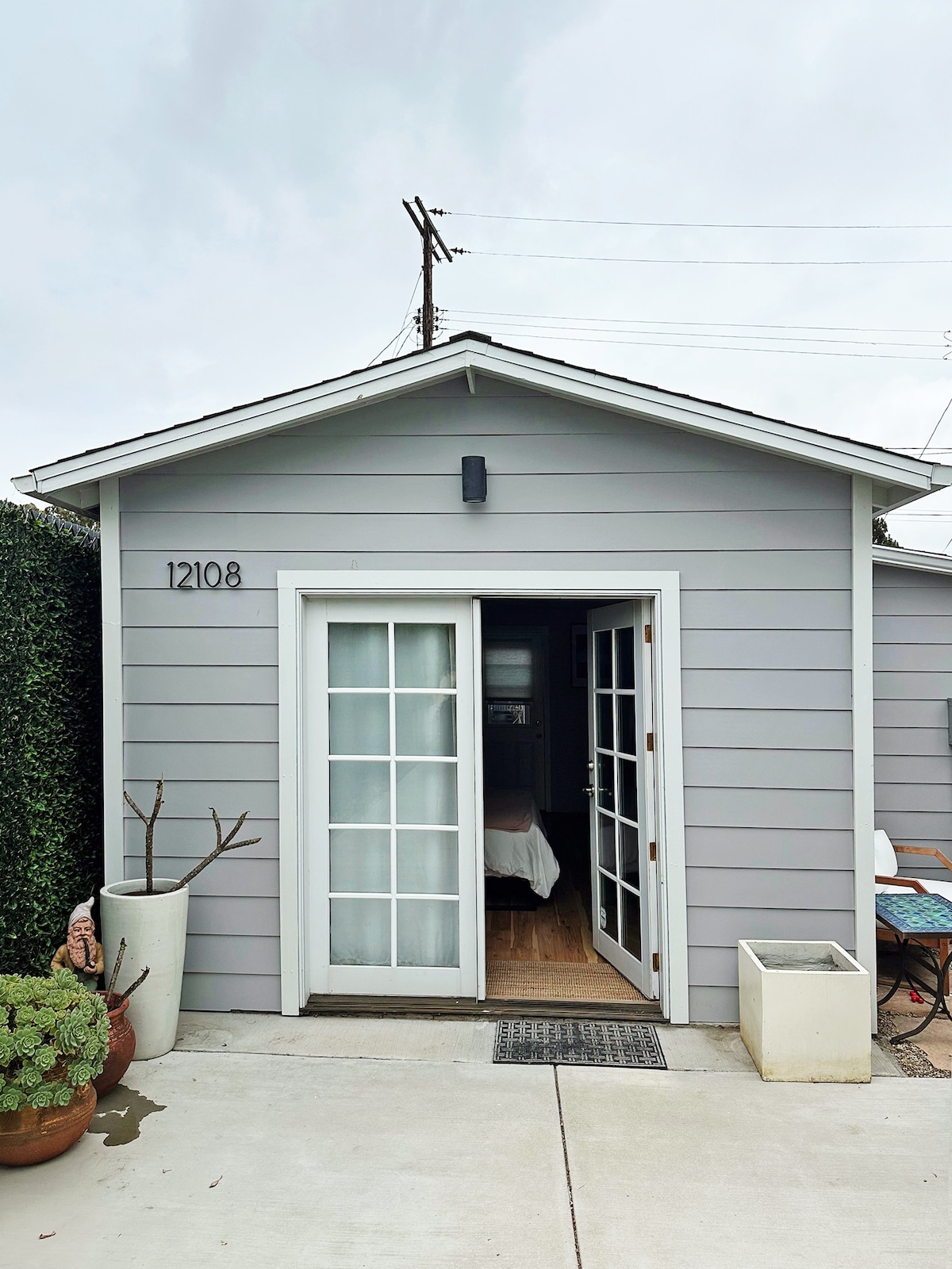 Step through the carriage doors and into an open interior with polished concrete floors, plus a kitchen with navy cabinets and stone countertops. The bedroom comes with barn door, bamboo floors, and 55" HDTV, while a verdant garden awaits outside. Enter the guest house thru carriage doors to a first floor open living space with kitchen, sofa and 60'' HD flatscreen TV. Polished concrete floors and stone countertops. Exit to open, outdoor staircase leading to an upper bedroom with Cal-King Bed, bamboo floors, dresser, 55'' HD TV, comfortable bathroom with walk-in shower and vanity. Wifi / Cable / AC & Heating units in each room. Design is a mix of beach cottage with contemporary accents. 2 Blocks to beautiful Ocean Avenue to watch gorgeous California sunsets or walk to beach. 2 Blocks to Montana Avenue shopping and cafes. Close to Promenade and Metrolink. Unbeatable Location ! Our place is good for couples, solo adventurers, and business travelers. The bungalow is a separate guesthouse but owners are present on the property in the main house. Outside table with a bench and chairs are perfectly located for morning coffee lunch or evening cocktail. We live in the front house so feel free to reach out to us with any questions and/or concerns regarding your stay. Leave the car behind - the beach, restaurants, cafes, and shops, are all an easy walk away. Rent a bike nearby to explore further. Watch the sunset over the water from Ocean Avenue, 2 blocks away, while Metrolink and Promenade are also close. Rent a Hulu Bike for your stay. “On May 12, 2015, the Santa Monica City Council adopted the Home-Sharing Ordinance reiterating its ban on the rental of entire units as vacation rentals. The Home-Sharing Ordinance also legalized the short term rental of a portion of a person’s home when the host lives on-site throughout the visitor’s stay and when the host obtains a business license. Hosts are also required to collect and remit Transient Occupancy Tax (TOT) if not collected and remitted by the hosting platform.” Our license #221557 is listed with the City of Santa Monica