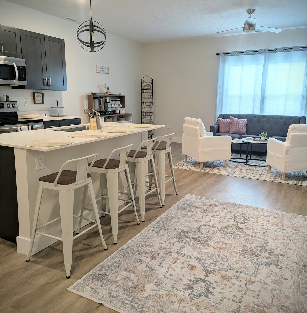 Looking for a place near Purdue that’s peaceful yet perfectly located? You’ve found it. This modern 2-bedroom, 2-bath apartment is nestled in Downtown Lafayette—just over a mile from campus, with walkable access to top spots like Chauncey Village, Ross-Ade Stadium, and Mackey Arena. ✅ Prime Location ✅ Fast Wi-Fi & Dedicated Workspace ✅ Free Garage Parking ✅ Private Balcony ✅ Self Check-In Whether you're visiting for a few days or a few weeks, this space offers comfort, style, and convenience.