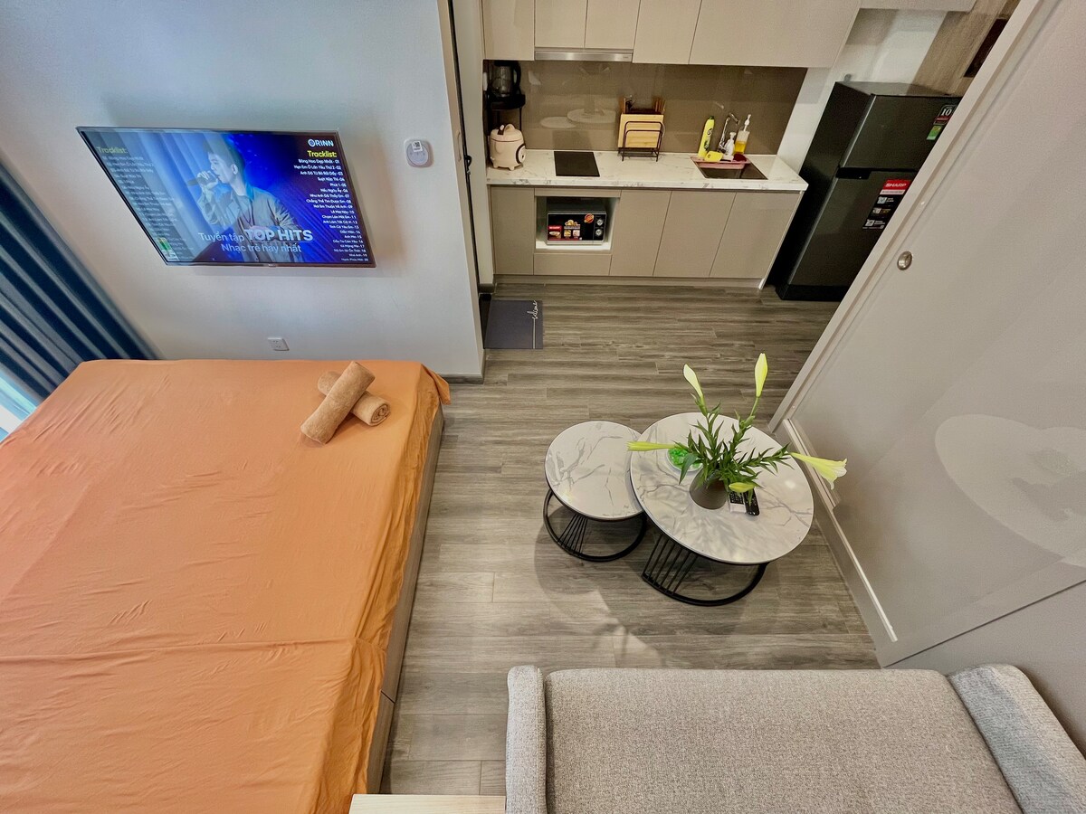 Căn hộ studio hiện đại & tiện nghi giữa lòng thành phố Bạn đang tìm một nơi vừa thoải mái như ở nhà, vừa có tầm nhìn đẹp để thư giãn? Căn hộ studio xinh xắn của chúng tôi nằm ở tầng 29, với view đảo xanh mát mắt và đầy đủ tiện nghi: internet nhanh, bếp nấu, giường êm, máy giặt & máy sấy riêng biệt đảm bảo chăm sóc tối ưu nhất. Thích hợp cho cặp đôi hoặc bạn trẻ làm việc từ xa, muốn kết hợp vừa làm việc vừa tận hưởng kỳ nghỉ đáng nhớ.