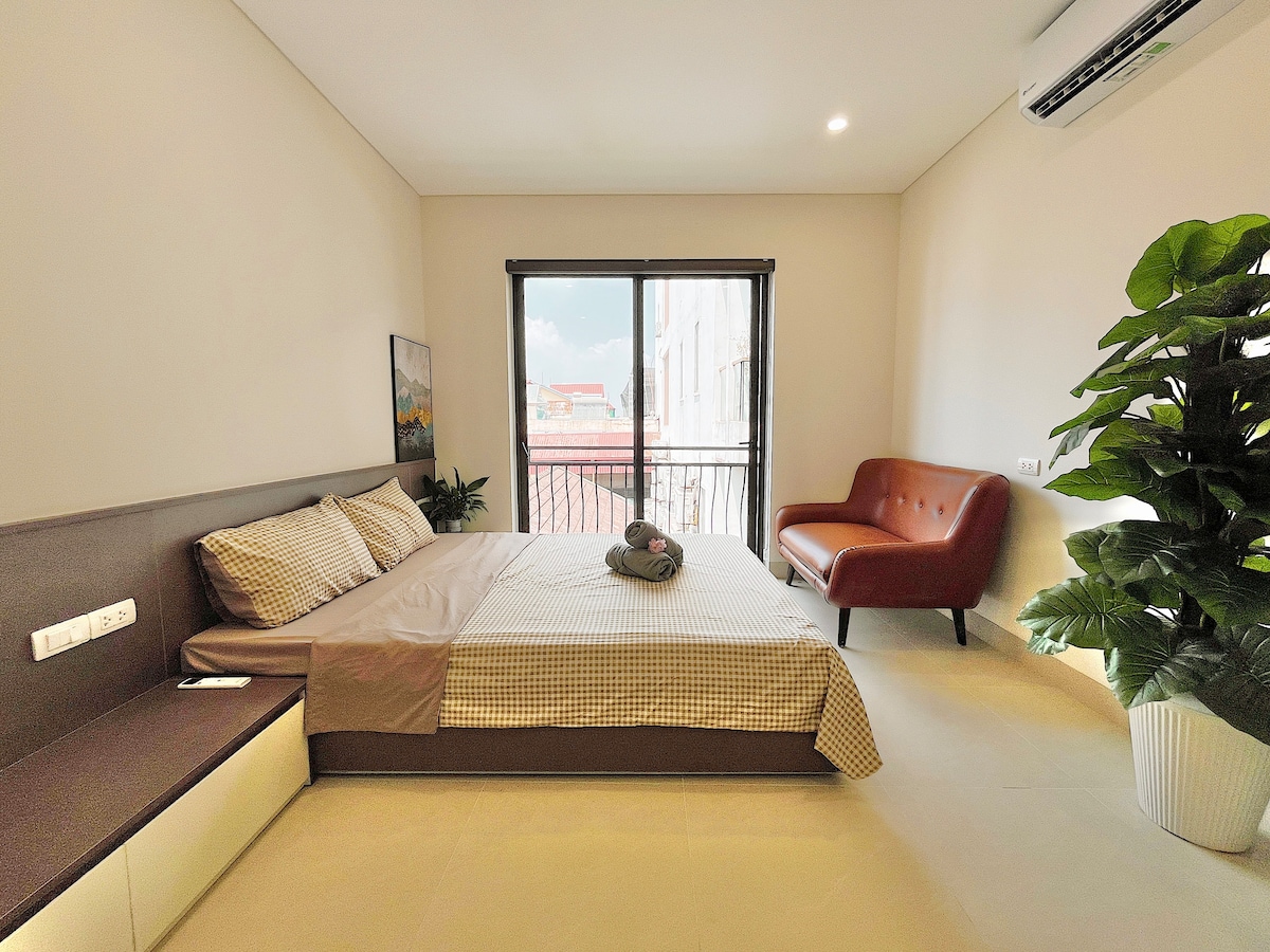 Uncover a Treasure on a Major Street in Hoan Kiem District. Located near the old town, the room is bathed in natural light from a large window, creating a cozy atmosphere. The sounds of vendors and aromas from the bustling streets add to its lively charm. -7m walk to the Old Quarter, -10m to Hanoi Railway Station -20 minutes to the Night Market. -Elevator -Free Washing Machine n Dryer -Famous Restaurant and Cafés Nearby -Fully Equipped Kitchen -Netflix - Sim card for sale
