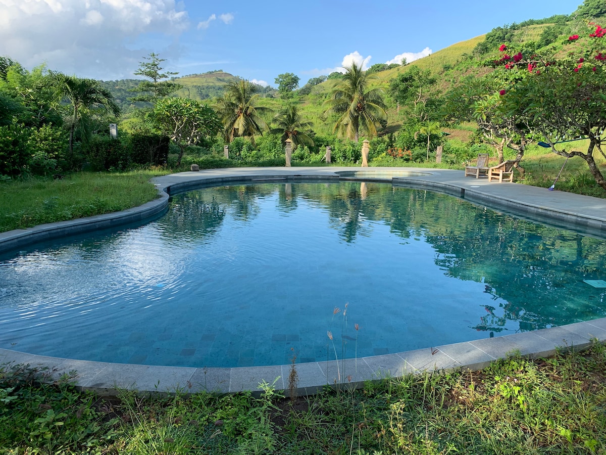 Our beautiful Villa is built in the tropical style with all the conveniences of modern living. You will stay in the whole house, with 3 en-suite bathrooms, AC and ocean views. Enjoy swimming in our secluded fresh water pool surrounded by leafy flower gardens. Take time to slow down and reflect, savour stunning bay views, enjoy island trips, diving, snorkelling and surfing. Stay and experience Desert Point, Kuta Beach and the 'Secret' Gilis. Unwind in our own restaurant/bar overlooking the bay.