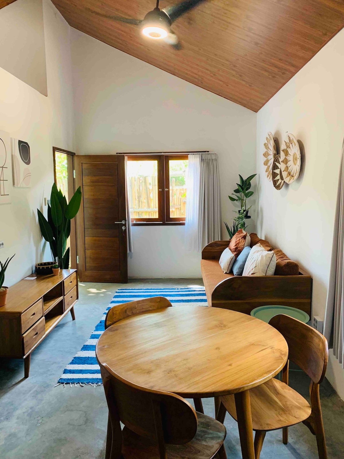 Beranda Living is a spacious and fully furnished 3-bedroom house, suitable for a family or group stay. The villa is situated in Rembiga, Mataram, 13 km from Senggigi Beach and 5 km from the Mataram city centre. Food stalls, minimarket and ATM are just around the corner. Beranda Living has its own secure parking lot and veranda overlooking a big garden.