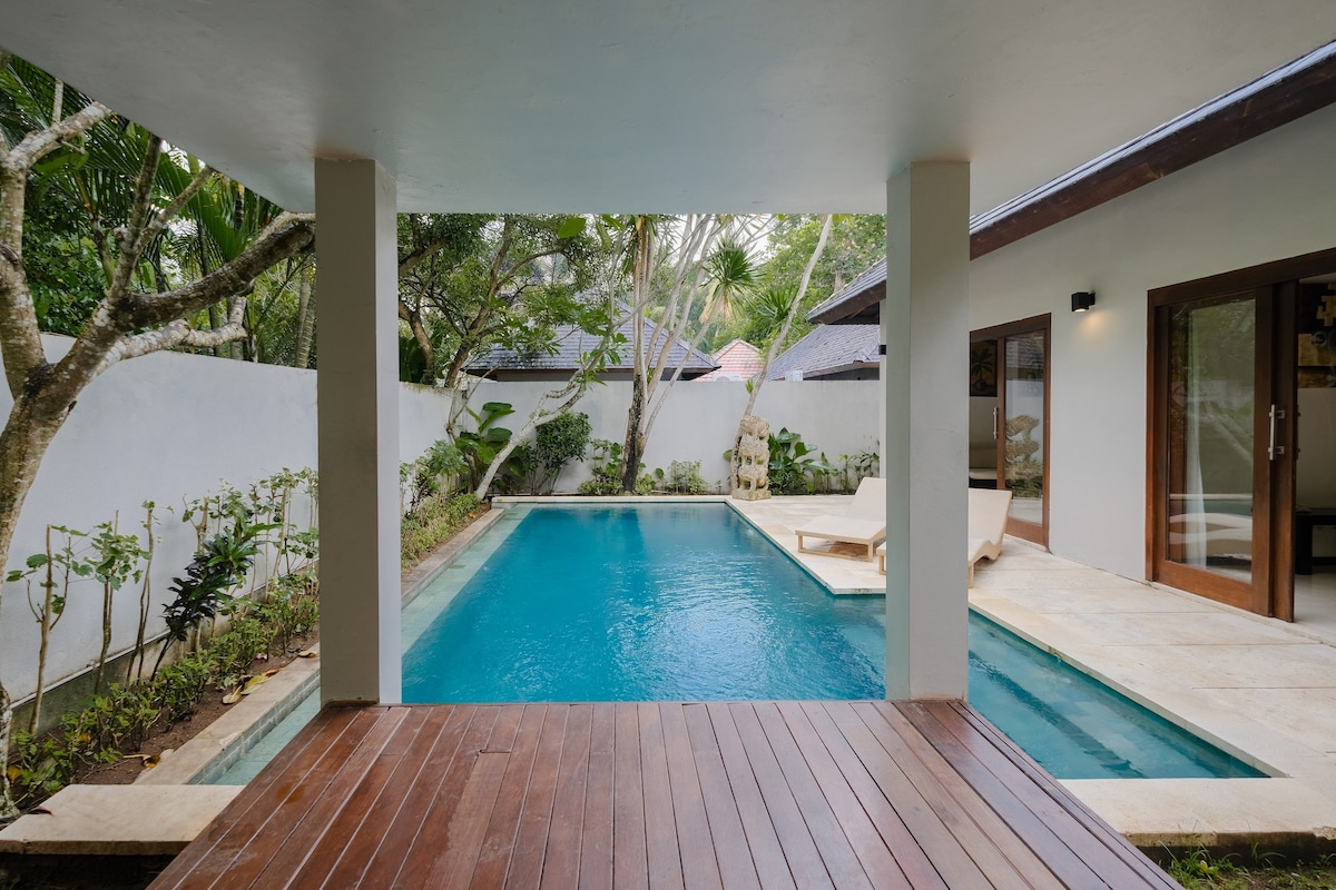 New Listing! Step into the brand-new and luxurious bungalow nestled in a serene area in the heart of Kuta. Soluna Bungalows is a relaxing retreat close to restaurants, shops, beaches, gyms, and yoga studios. Explore the magical surroundings or unwind in the tropical garden and the large pool. ✔ 1 Comfortable King Bedroom ✔ Ensuite Bathroom w/ Skylight ✔ Private Deck ✔ Tropical garden & covered lounge ✔ Large pool with comfy sunbeds ✔ Workspace ✔ High-Speed Wi-Fi ✔ Mini-Fridge ✔ 24/7 Security