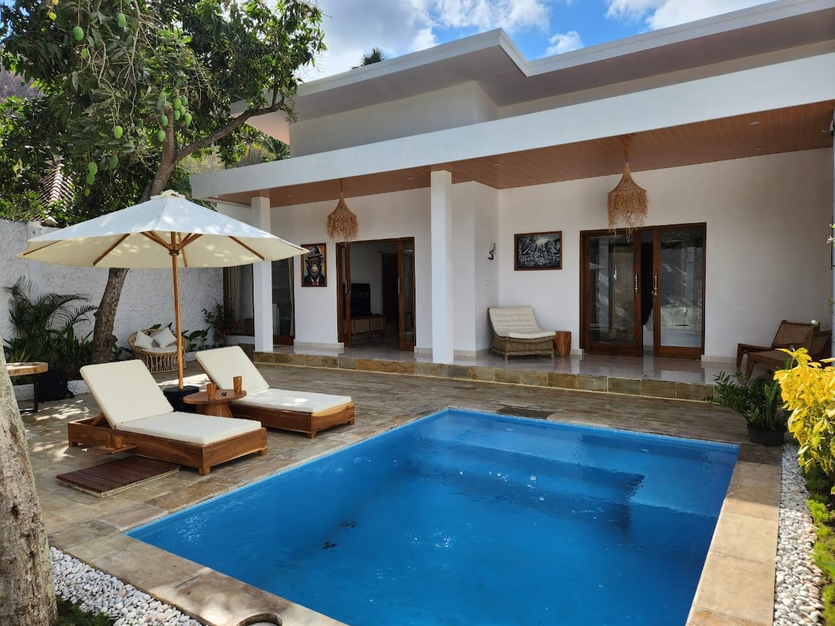 Surf-inspired villa just minutes from Kuta Lombok’s best beaches and breaks. Whether you're chasing waves or chasing sunsets, this 1 bedroom villa is designed for easy island living with zero stress. Enjoy a stylish open-plan villa featuring: - A private pool with sun loungers - Comfy king-sized bed - AC in the bedroom - Fast Wi-Fi and a Smart TV - Well-equipped kitchenette + coffee machine - Modern minimalist design - Perfect for surfers, couples, or solo travelers - Centrally located