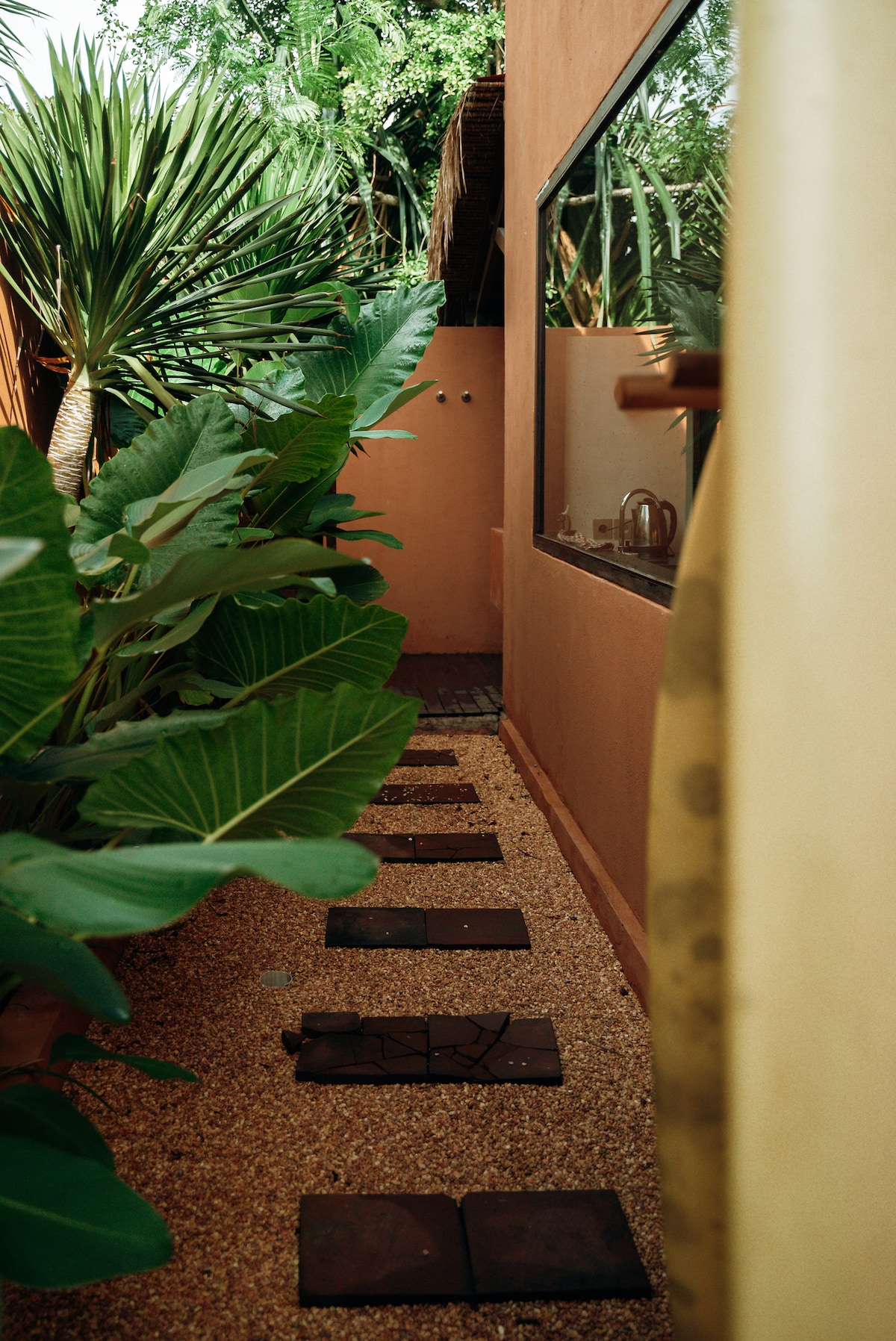 ISI ISI is a cosy two floor house with AC, Pool, kitchen, big bathroom and lush garden, built with natural materials and surrounded by palm trees beside a little river. ISI ISI is for those, who like to get in touch with nature and local life. The area is a rural village called Merendeng, 15 minutes away from the main road walkway, 5 minutes with scooter. There is a private parking. The sleeping room provides a panorama view. The big terrace is nice to chill, make yoga or lay in the hammock.