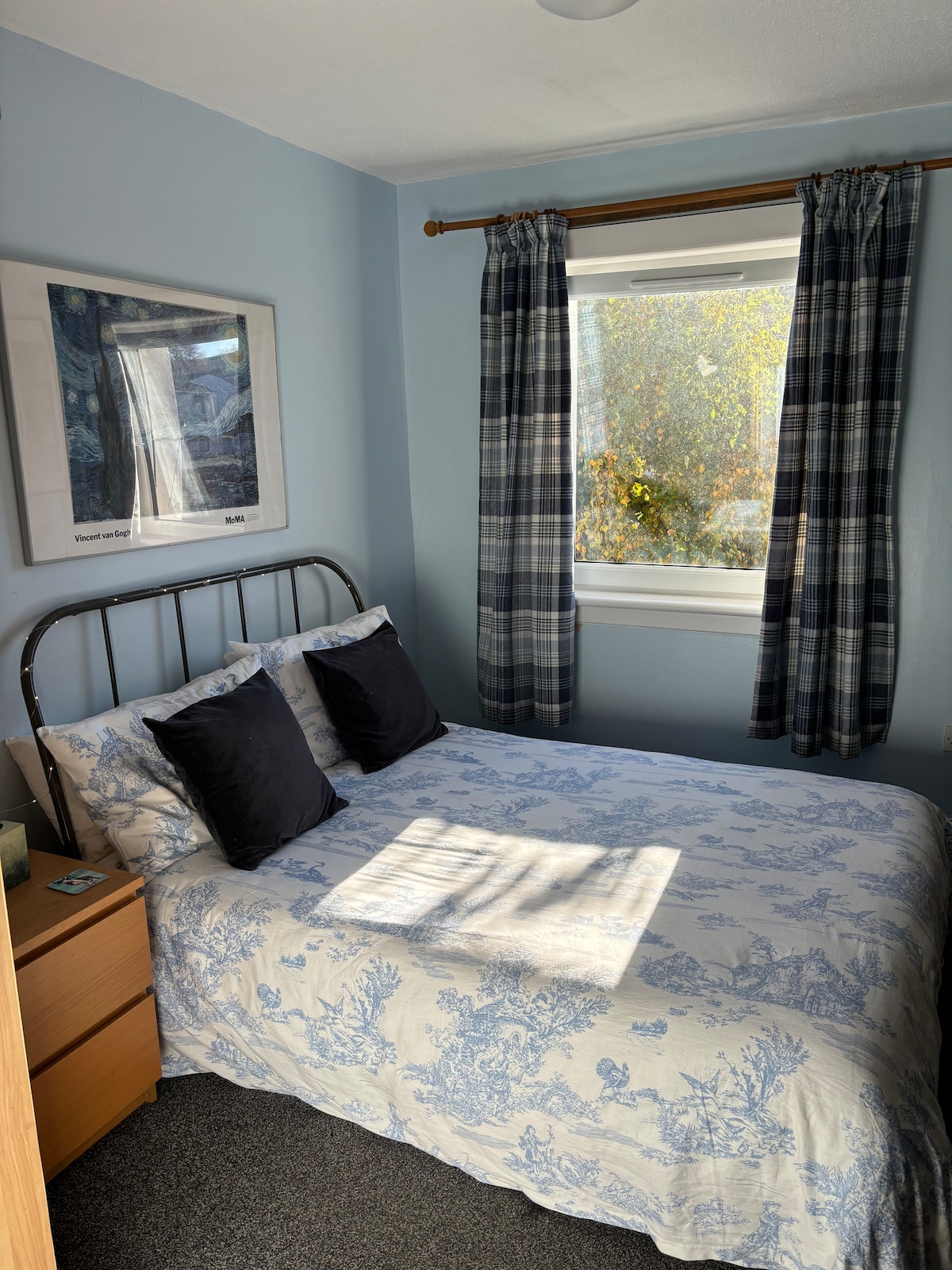The room is part of a four-bedroomed family home, which has been upgraded and recently decorated. There is a lovely, bright garden. The house is situated in South Queensferry, just 6.9 miles from Edinburgh City centre, and close to railway and motorway links leading all over Scotland. Edinburgh Airport is 6.7 miles away. There is off-road parking at the front of the house.