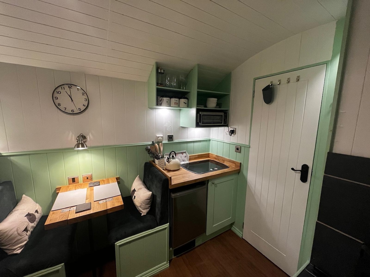 A lovingly created Shepherds hut for two, in walking distance of Lulworth Cove and all the village amenities. This is one of 2 huts each with off road parking and shared access path down steps to private facilities. Next to our garden and our neighbours. All of which are family homes. A fully self contained hut including a double bed, kitchen with multi cooker, wood burner and en-suite bathroom including hot shower and state of the art composting toilet. Small enclosed garden; dog friendly.