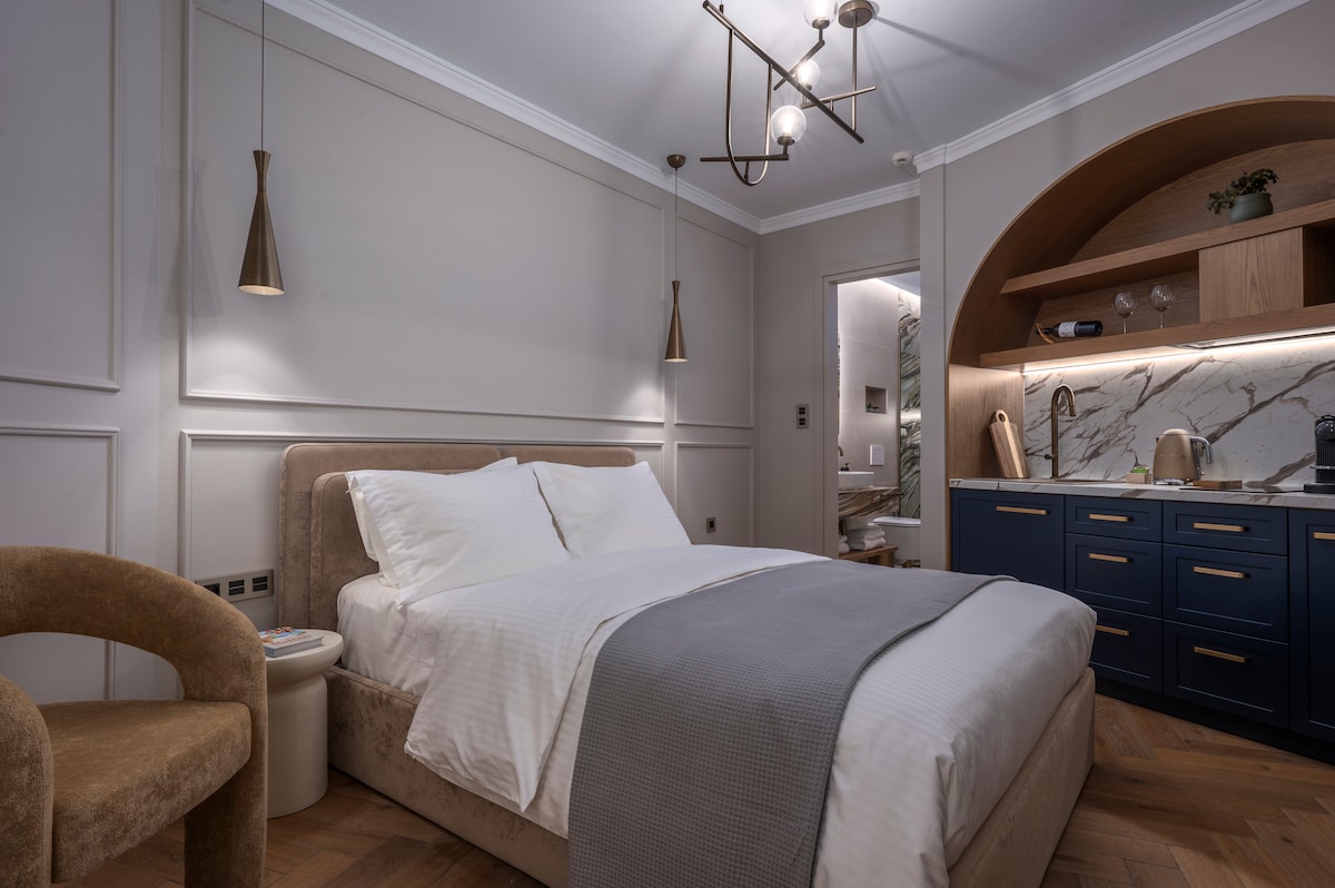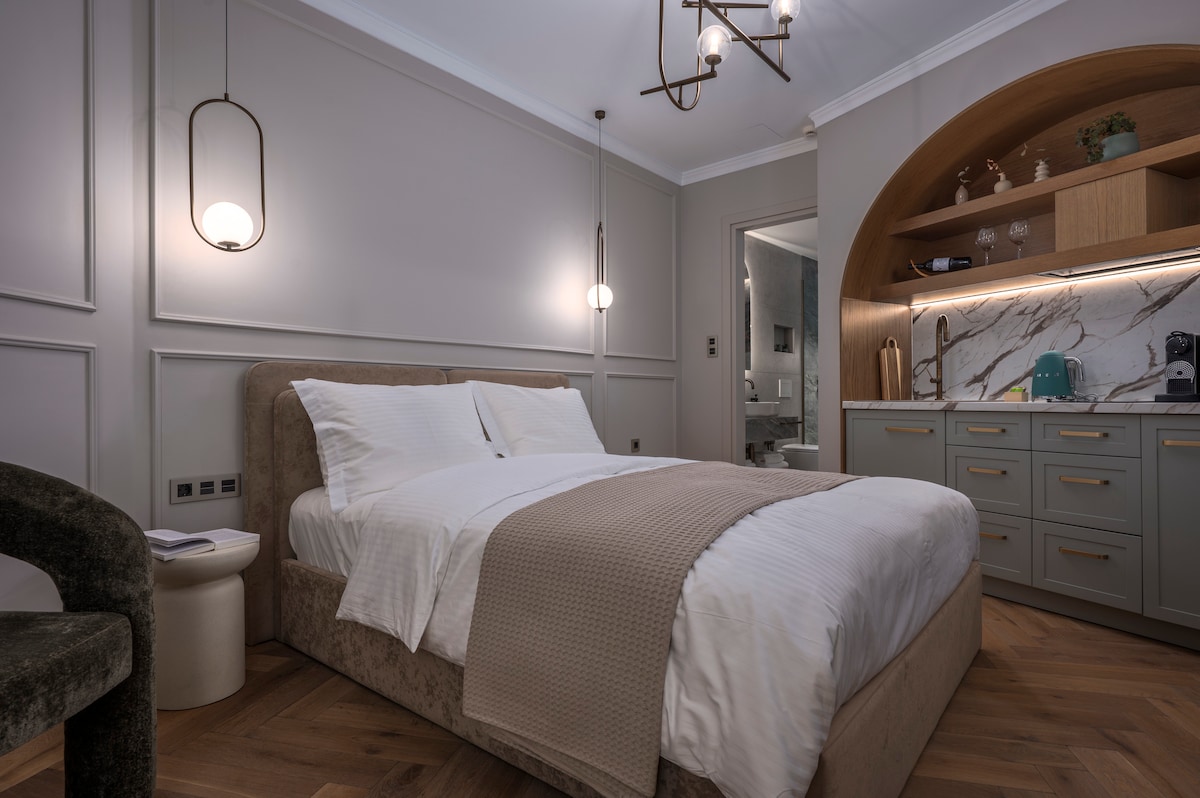 Η Σουίτα HLIOTROPIO είναι ένας χώρος που συνδυάζει την ιστορική κληρονομιά της Φλώρινας με την μοντέρνα πολυτέλεια. Κάθε γωνιά του αντανακλά την έμπνευση των παλιών γλυπτών, ενώ η τοποθεσία δίπλα στο ποτάμι και με θέα το βουνό δημιουργεί ένα καταφύγιο ηρεμίας και έμπνευσης.