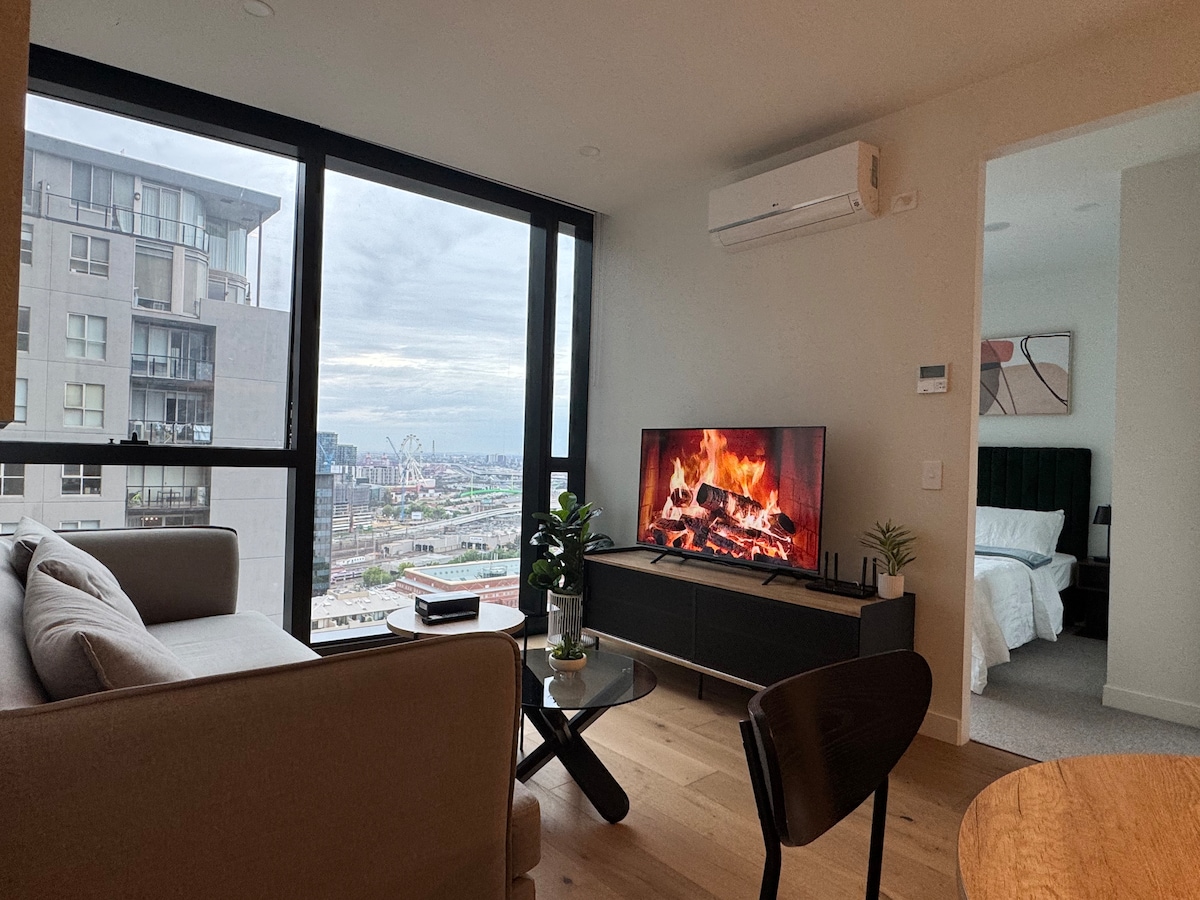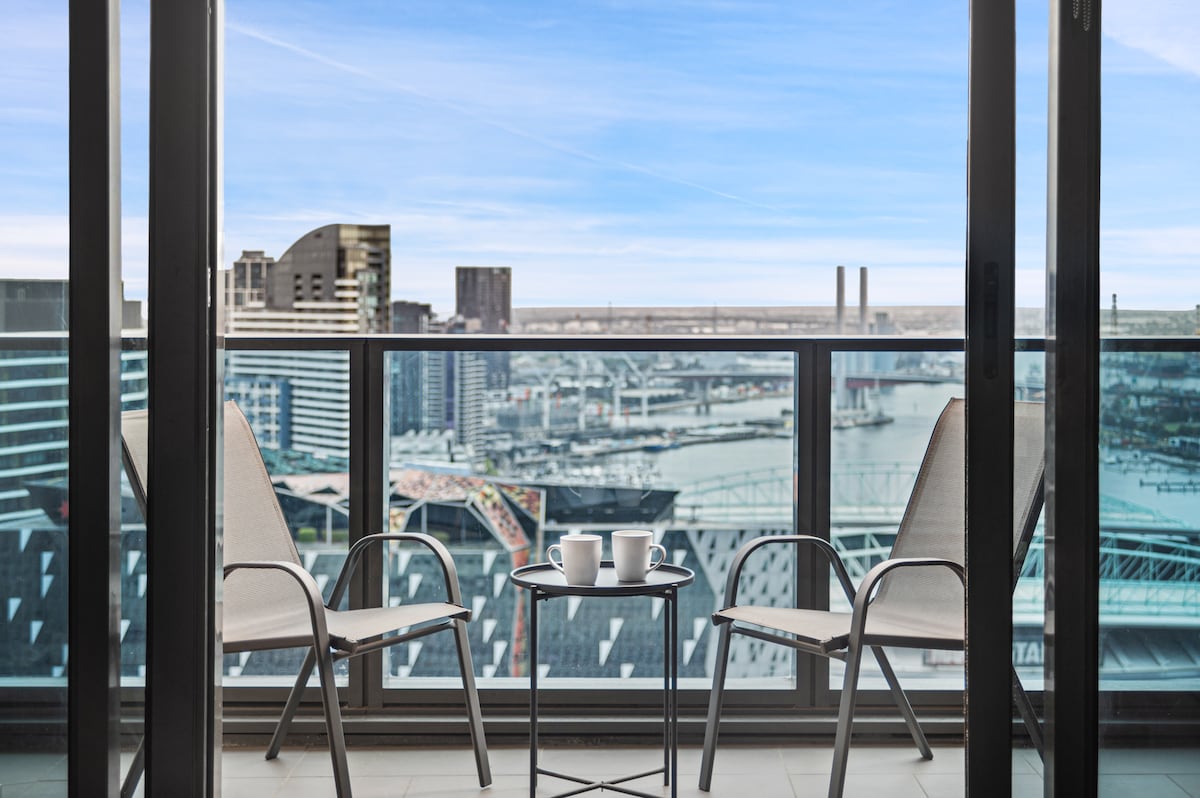 Enjoy a clean, relaxed experience at this centrally located place. Try the top floor! In Melbourne CBD this place really stands out. Phenomenal sunsets! Unencumbered views to the bay, rivers, Docklands, WestGate & Bolte Bridges, distant hills, city lights. Convenient. Walk to Crown, ConventionC, Marvel Stadium, Southern Cross Station, il Mercato Centrale. Great amenities: Pool/spa/sauna/gym. 1x Quality queen bed + Quality 2x sofa beds, linen, Hot shower, Kitchen, Ergonomic Desk, AppleTV