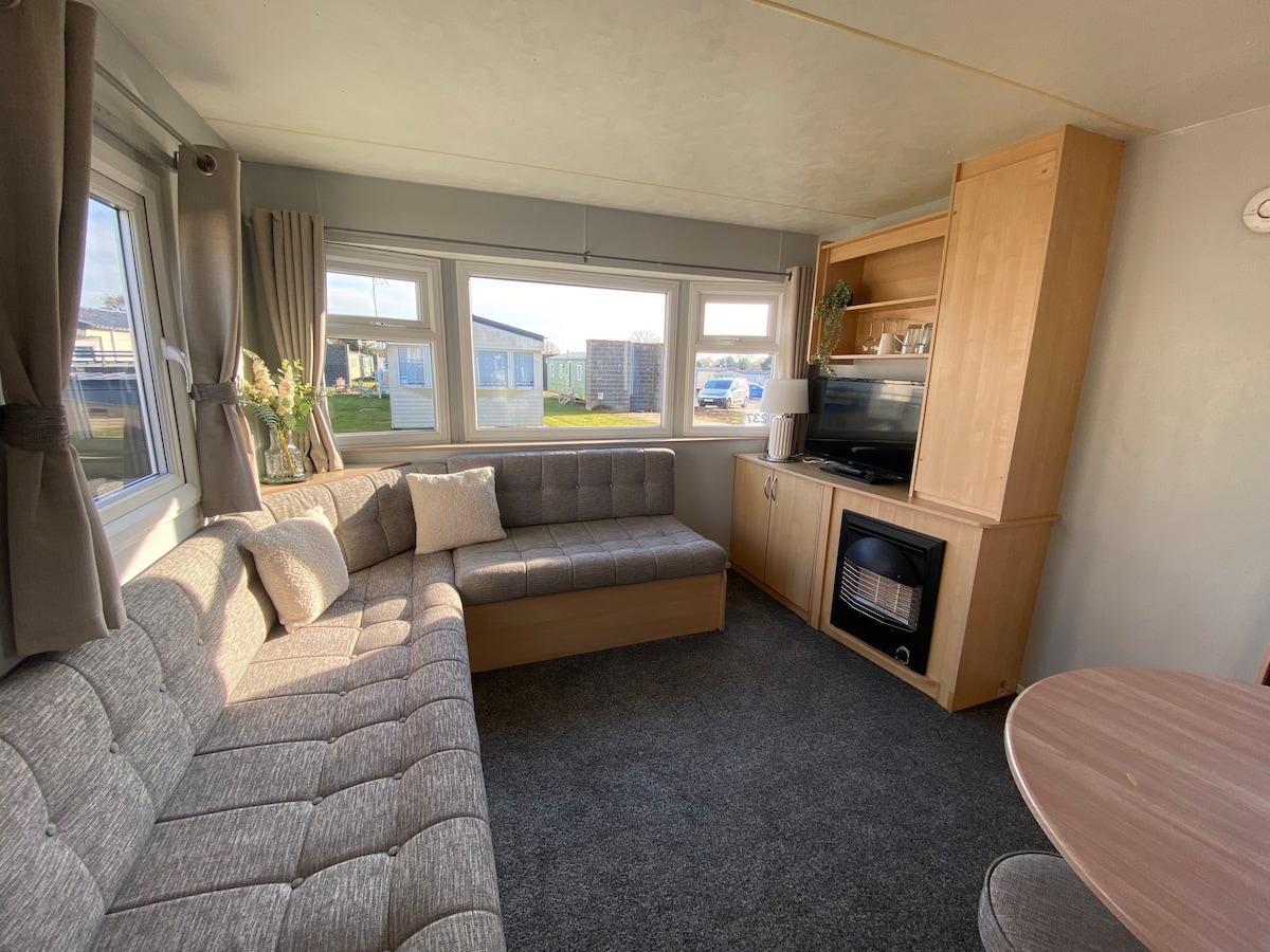 Moments from the beach our holiday home is a cosy, well equipped, 3 bedroomed 35 ft static caravan with leisure decking. Sited in a quiet location on West Mersea's Waldegraves Holiday Park. Beautiful sea views, amazing sunsets and a private garden to unwind and relax in. The Park's facilities/entertainment for families are near at hand. Seafood has been Mersea's speciality since the Roman times. Colchester, a short drive away offers a wide variety of leisure and entertainment venues.