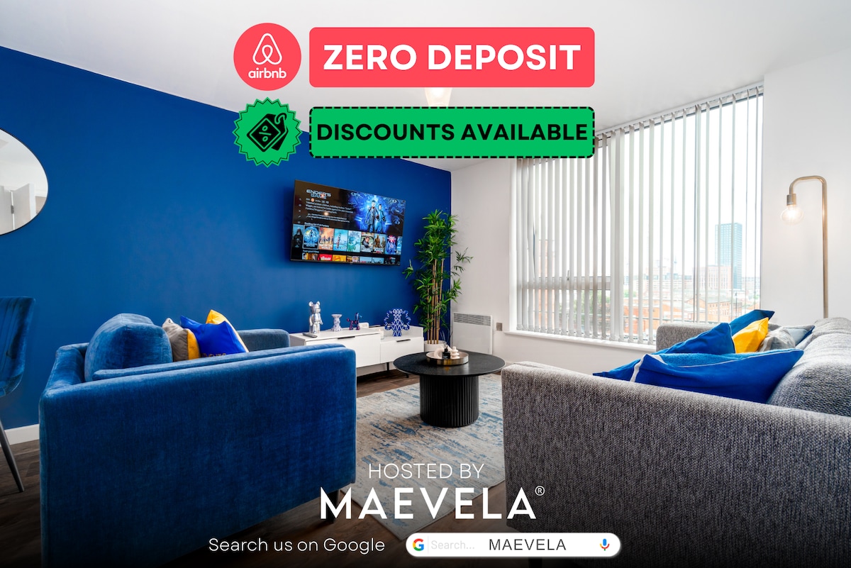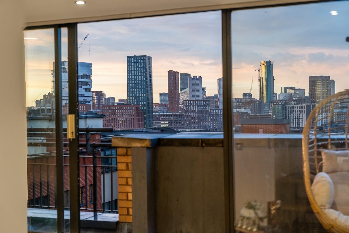 Luxury Penthouse Living: Birmingham Best Skyline View 🕰️24 Hour Self Check-In Top Floor Penthouse. Enjoy Birmingham skyline views from the double balcony with outdoor seating. Sleeps 4 (King Bed, Double Sofa-Bed, Small Kid Sofa-Bed). Features a full kitchen, bath/shower, luxury amenities, and hotel linen. Location: 9 min walk to Bullring/City Centre. Easy access to all train/coach stations. Parking: Free street parking or paid secure parking available. Secure self check-in.