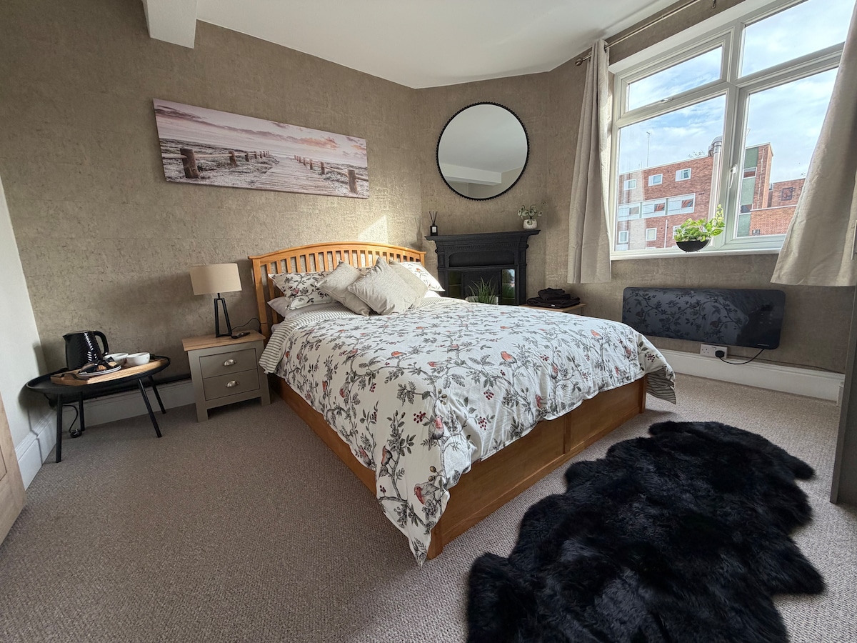 Bright, self-contained annexe on the 1st floor with private entry and lockbox for easy check-in. Features a king-size bed, sofa bed, dining area, and kitchenette with fridge/freezer, toaster, and tea/coffee facilities (no hob/oven). Mezzanine with two single beds, accessed by stepladder with lockable gate. Modern ensuite with shower and fresh towels. 42” TV with Netflix (no terrestrial TV). Private parking for 2–3 cars. EV charger available on request for a fee.