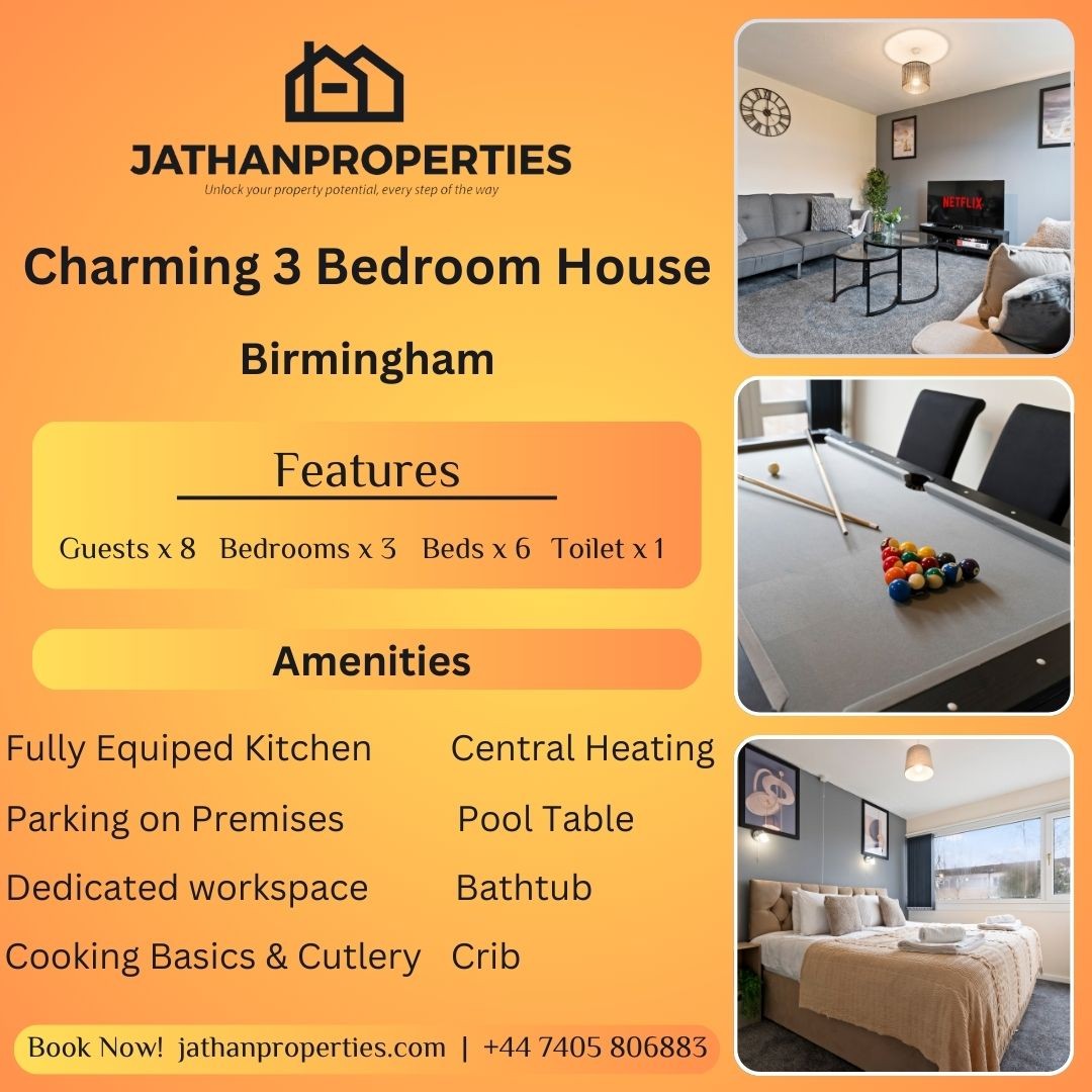 3卧室,靠近M6,带热水浴缸、停车位和Netflix