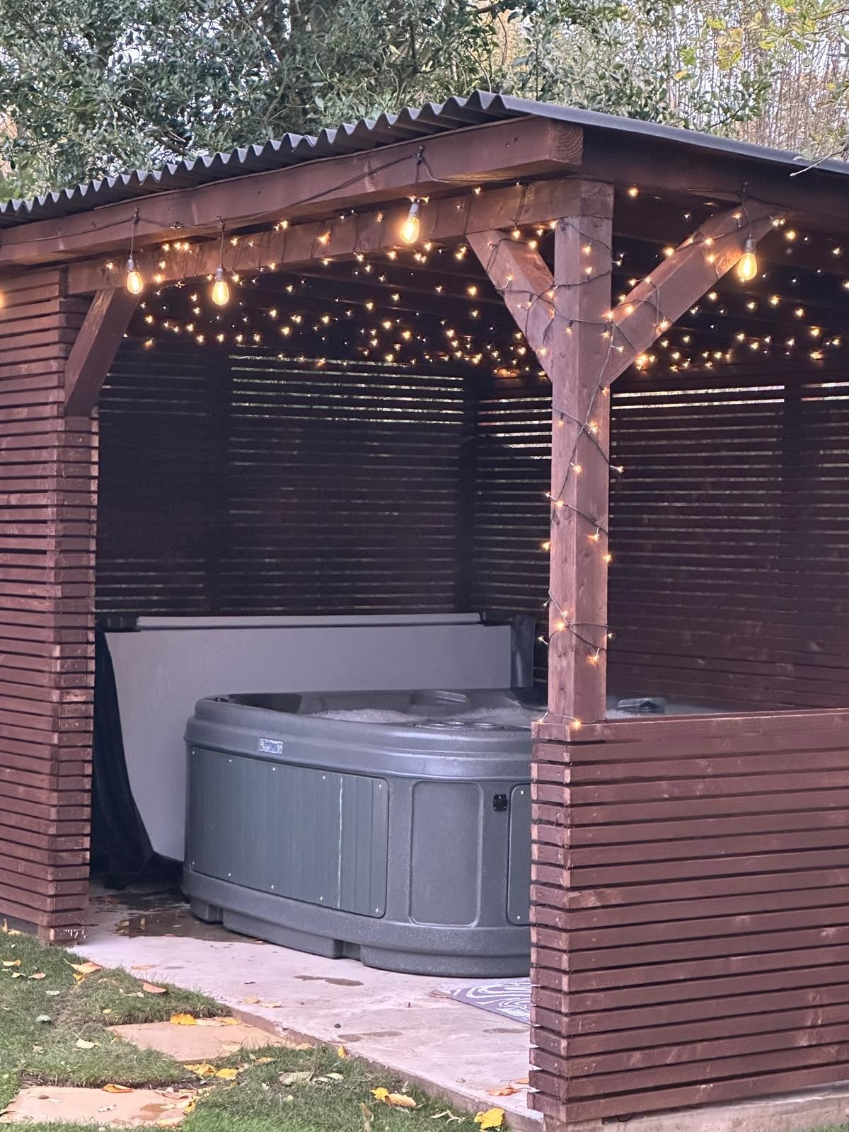 Luxury break in the cabin with open beams & rustic charm. Relax in this calm, stylish, peaceful retreat. Enjoy a romantic break with 4 poster bed for a luxurious nights sleep, wake up to our open field views. Hop on our local golf course or hike through the countryside, enjoy the wildlife and head back and relax in the warm bubbly hot tub surrounded by fairy lights for that romantic evening under the stars. Close to Coventry, very close for NEC, NIA, Birmingham near to Stratford,. M6 and A45