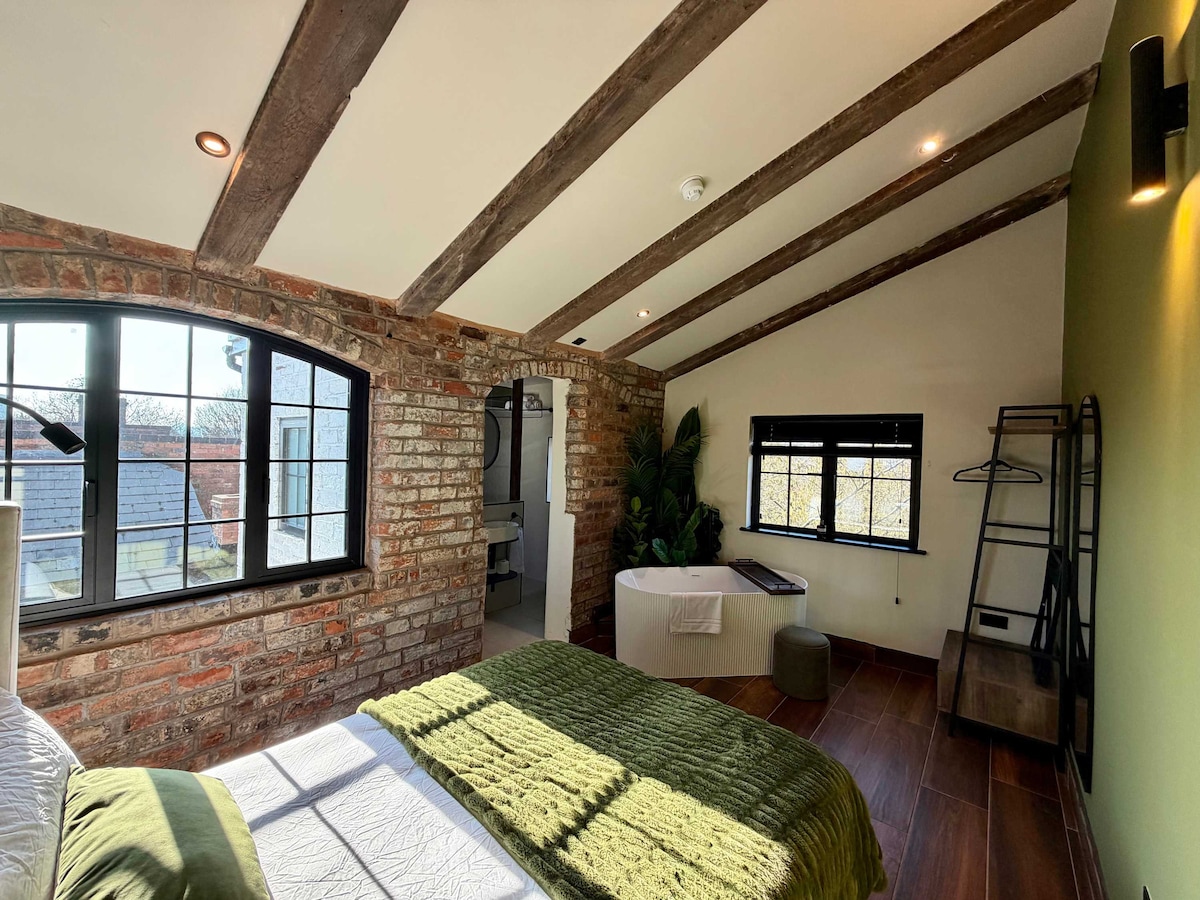 A luxurious self catered barn conversion offering a unique and romantic escape nestled in the picturesque Warwickshire countryside. A place to relax and unwind whether it’s in our gorgeous freestanding bath tub, our 4 poster bed or by putting your feet up in front of the log burner and enjoying the warm and ambient glow. Take a dip in our traditional outdoor spa bath tub situated in your private patio area and watch the sunset across the fields. This is truly a stunning and unforgettable stay.
