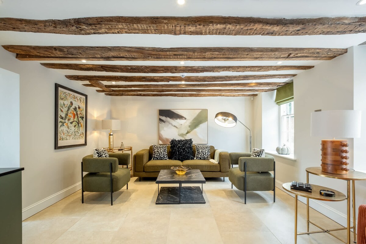 Immaculate, luxurious and fully restored 18th Century Towcester Coaching Inn located 4 miles (10 minute drive) from Silverstone. Sumptuously decorated and furnished with antiques. A unique property full of period features which exudes charm and is sure to impress. Four double bedrooms but can sleep nine people if the sofa bed in the lounge is utilised. The main bedroom has its own dressing room, lounge area and ensuite with an impressive king sized bed located on a mezzanine.
