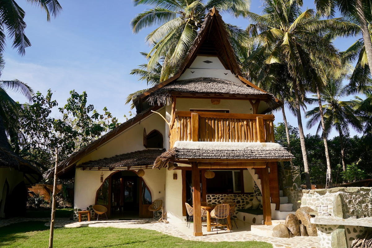 Welcome to Coco Mimpi, a one-of-a-kind beachfront home crafted with love and creativity. Built by passionate artisans using natural stone and artistic woodwork, this magical hobbit-style retreat overlooks the ocean and is surrounded by secluded beaches, waterfalls, local villages, surf spots, gorgeous sunsets, seaweed farms, and island adventures. Nestled on Kertasari Beach, the home sits within a large tropical garden under a peaceful coconut grove — private, serene, and right by the sea.