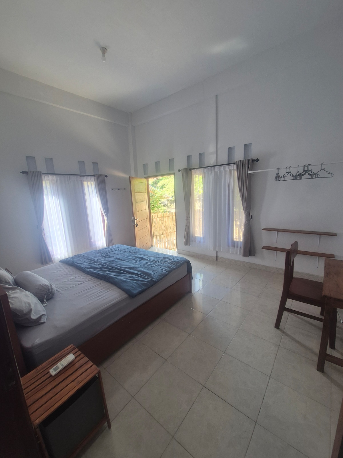 Relax at Sahara Sands Guesthouse, just a 2-minute walk from Gili Trawangan’s beautiful Turtle Point Beach. This bright, airy one-bedroom studio offers a peaceful retreat with a private entrance, ensuite bathroom, and A/C. Ideal for couples or solo travelers looking to unwind while staying close to the island’s best snorkeling, cafes, and natural beauty.