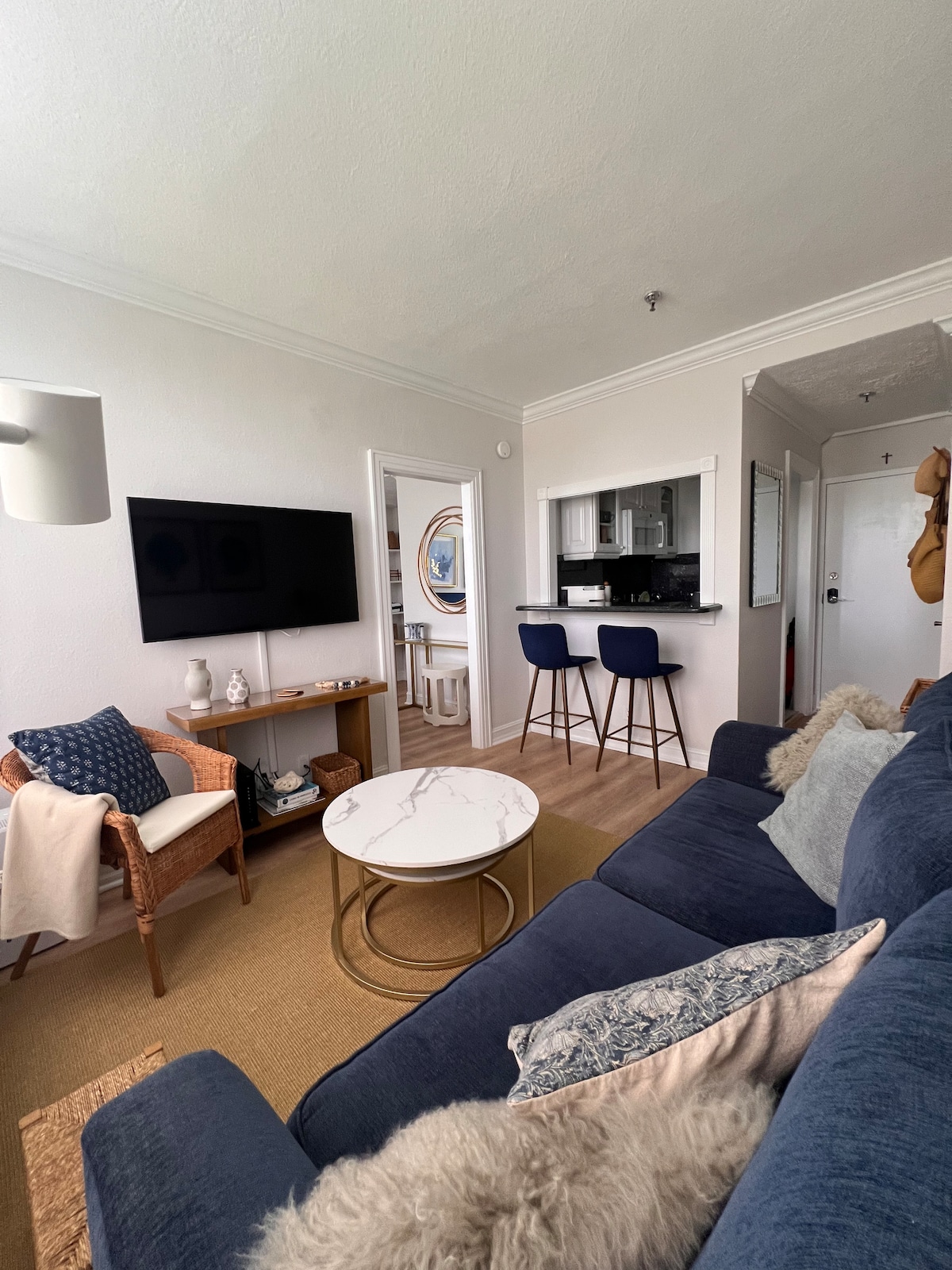 Indulge in the ultimate city experience at our freshly updated studio apartment. Relax in the king-sized bed, rejuvenate with the hydro shower, and set the mood with our unique mood-setting mirror. The 65" HD TV and LED recessed lighting create the perfect blend of leisure and productivity. Storage is a breeze with a spacious closet, and the included parking adds extra convenience. All set in a prime central location minutes from top attractions and dining. Your stylish urban retreat awaits!