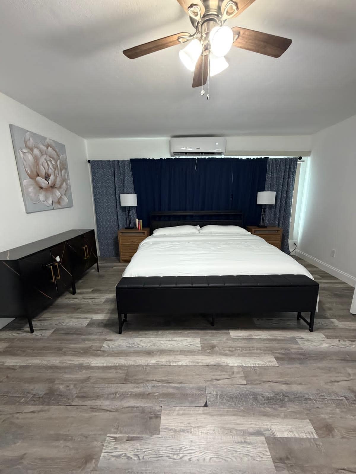 Experience affordable luxury and convenience at our fully-remodeled 1-bedroom apartment. Our stylish listing features a hydro-jet shower, fully-equipped kitchen, king size bed, and dimmable LED recessed lighting. Stay productive at our dedicated work desk or unwind in front of large large TVs in living room 75" & bedroom. With a dedicated parking spot, you're just minutes from the beach, restaurants, supermarkets, parks, and major highways. Easy self-check-in. Ideal for couples or professionals!