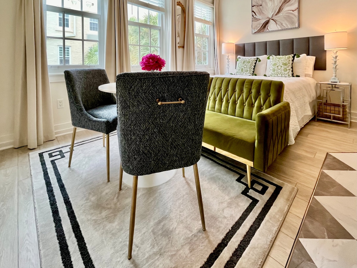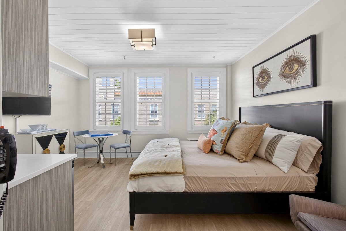 Incredibly-comfortable coastal retreat, with equipped kitchen & separate bedroom. Very well stocked. Set inside a historic “condo-hotel” offering numerous amenities, and situated in arguably the best location on the entire island. – 1 Bedroom Suite, with pullout-sofa in livingroom – Equipped Kitchen – Impeccably Clean ✨ – Attentive Host – 24-hour Front Desk with Luggage Storage – Heated Pool – Located just * 1 block * to beach, supermarket, shopping & restaurants! Walk everywhere!