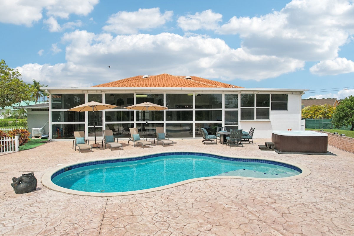 Welcome to "The Palms" where tropical vibe meets modern beach retreat. Our home is located 5 minutes from Downtown, Palm Beach, Airport, Singer Island and many white sand beaches! The Palms is a gated property that offers a brand new 6 person hot-tub, corn-hole, ping pong, and putting green. If you’re up for a bbq we have it all covered and included with your stay. In case of a HURRICANE, you can cancel free of charge and get a full refund.