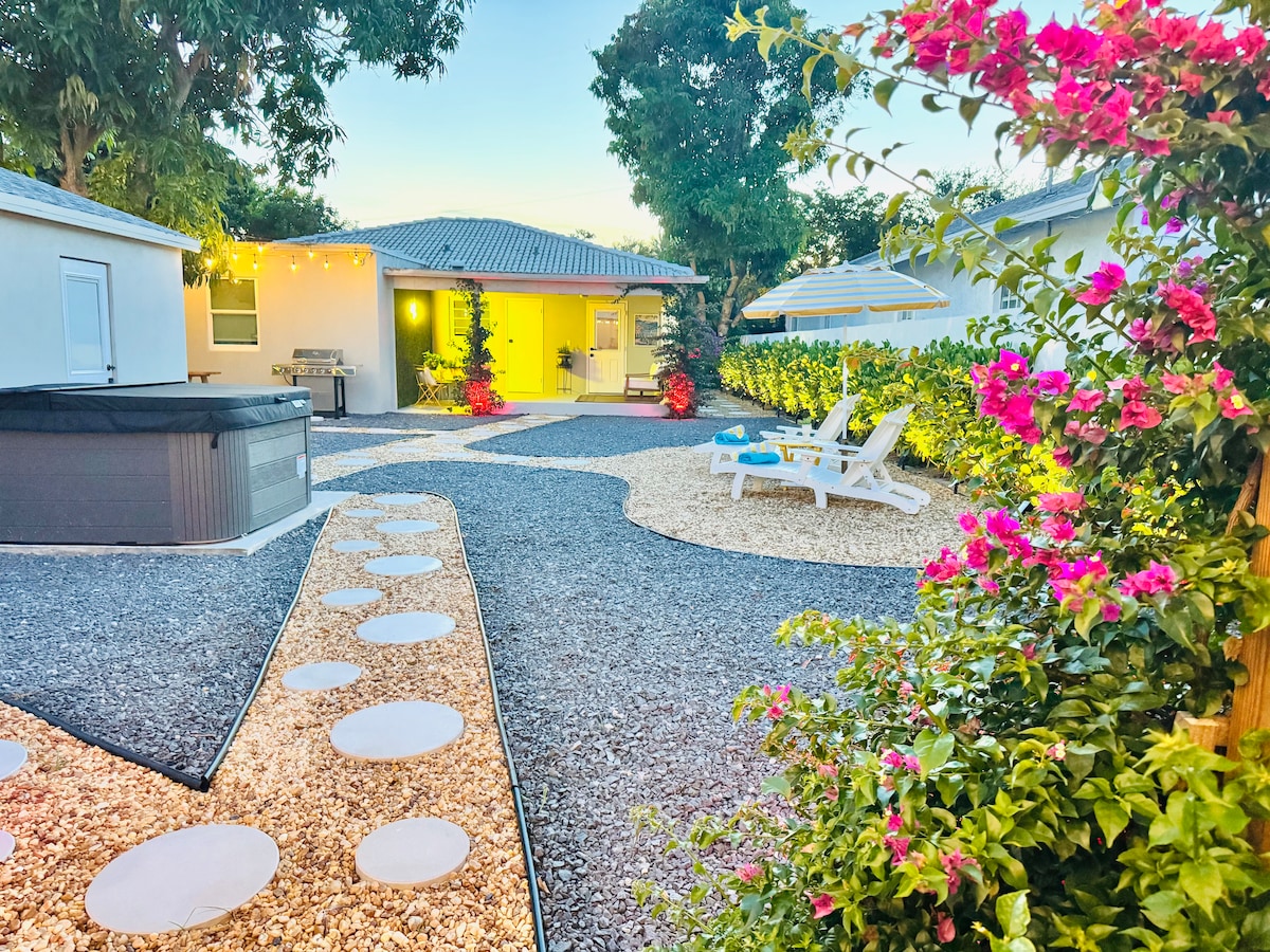 Enjoy the Putting Green, Hammock, Hot Tub, and Garden! You will be renting this home located on a beautiful property minutes from downtown West Palm, the beach, and airport. Newly renovated house with gorgeous garden backyard Shared backyard with hot tub (guest house is also listed separately on Airbnb) Smart TVs with WiFi Fully stocked kitchen with induction cooktop, convection oven, microwave, & dishwasher Washer & Dryer Laundry Soap & Haircare products Fresh Towels Free street parking