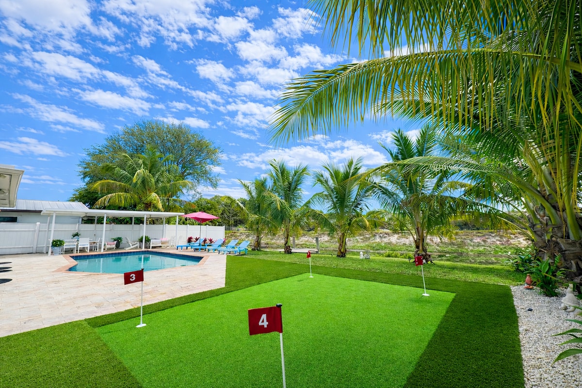 Drift Inn – Welcome to your own slice of waterfront paradise in Palm Beach County! This spacious lakefront escape sleeps 14 and is packed with resort-style amenities: unwind in the hot tub, perfect your swing on the putting green, or fire up the grill at the outdoor kitchen/bar. With stunning Lake Osborne views and sunsets that steal the show, every inch of this home is designed for fun, comfort, and connection. The perfect setting for families, friends, and unforgettable memories.