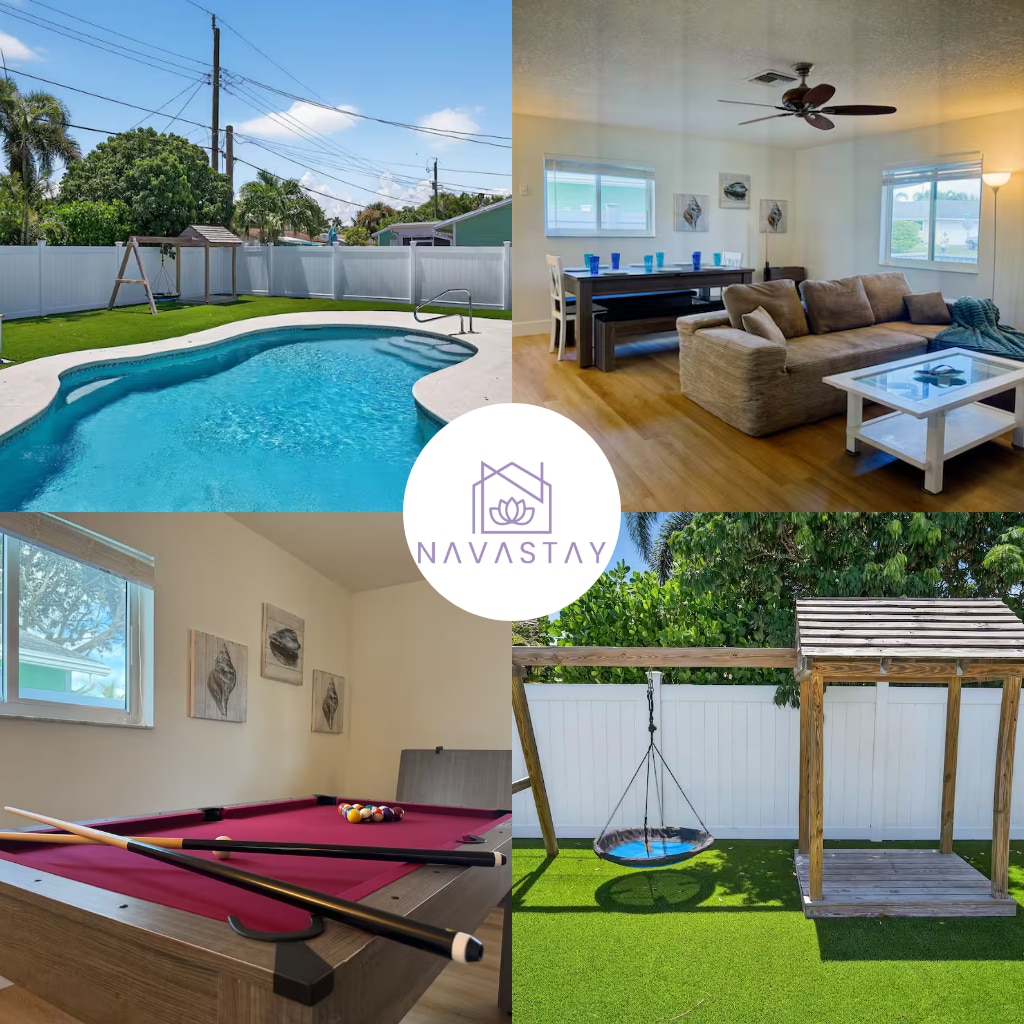 🌴 Relax at this luxury waterfront Delray Beach retreat in Delray Beach, featuring a heated pool & spa, private dock, screened porch with string lights & Smart TV, pool table, BBQ, and canal views. Bright open living and flexible sleeping for up to 10 guests make it perfect for families and groups seeking comfort, space, and true South Florida relaxation. Message us today and enjoy waterfront luxury, sunshine, and relaxation — all in one exceptional stay. 🌴☀️