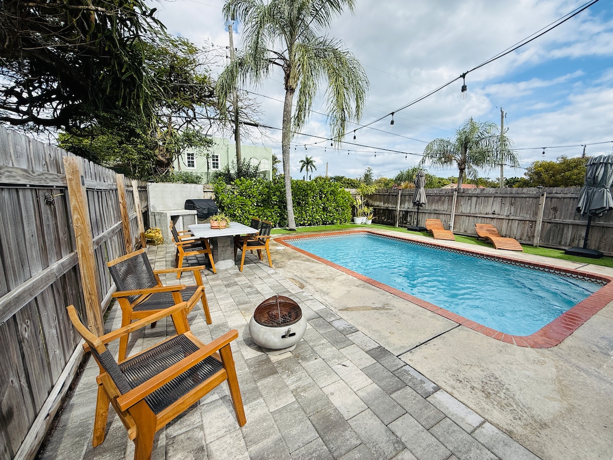 Welcome to your sunny West Palm Beach getaway. This beautiful home offers a heated pool, perfect for relaxing after a day of exploring the town or nearby beach. Conveniently located, it's just minutes from the PBI airport and downtown West Palm and a short walk to the zoo making it an ideal day out for families. The house has 3 spacious bedrooms, 2 modern bathrooms, and a fully stocked kitchen, providing all the comforts of home in a tropical setting. Enjoy the Florida sunshine in style!