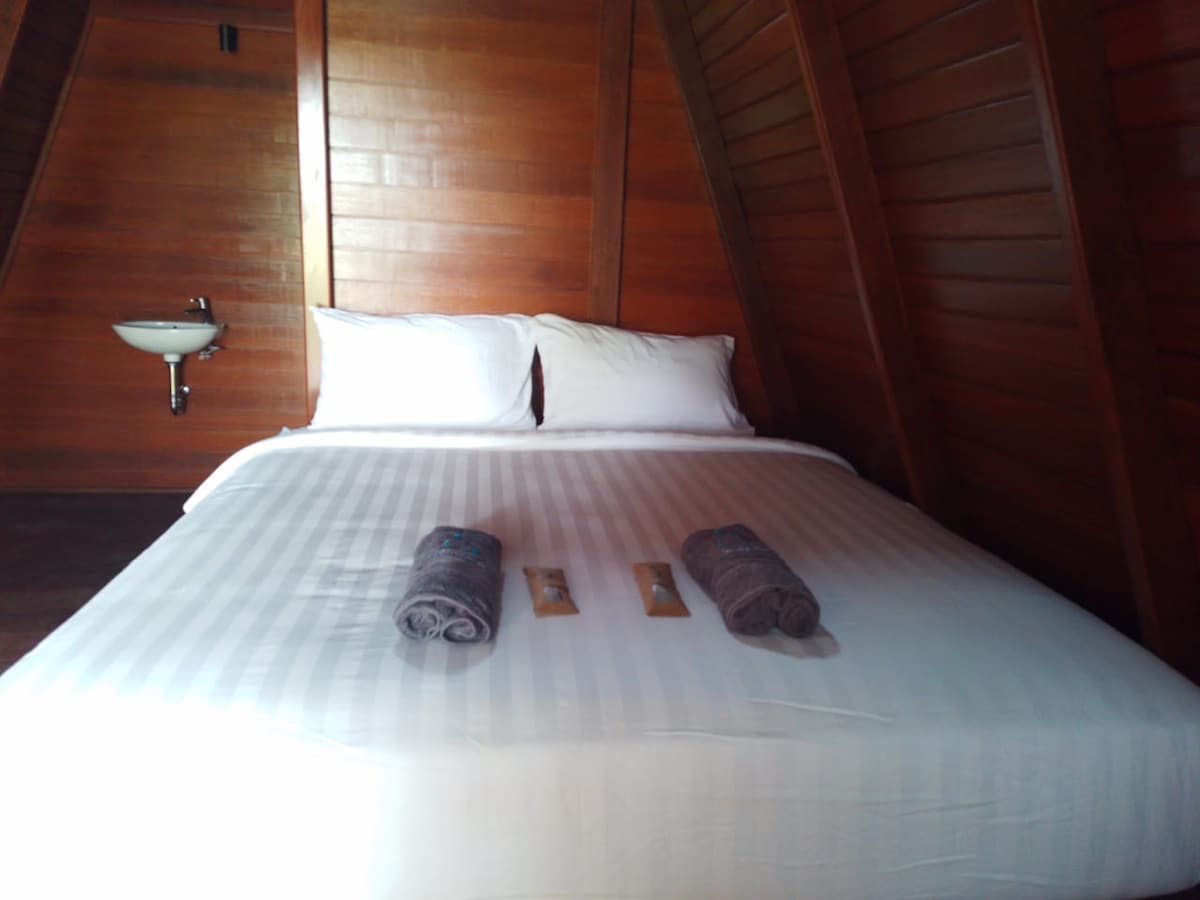 A beautiful simple lodge at the beach and water front view and Sorrounded by coconut trees and crystal clear water in the safely beach is good for you, your families and kids