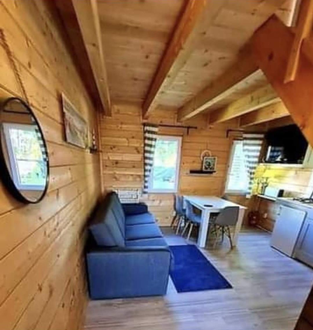 Dit in 2025 in Amerikaanse stijl gebouwde huisje is echt bijzonder. Het is direct aan een vijver gelegen waarin naast koi karpers veel vogels actief zijn. Het toilet-douche gebouw staat er direct naast maar is wel apart gebouwtje, wel zo prettig als je met meerdere gasten bent. Douchewater wordt electrisch verwarmd. Verwarming en koeling geschied doormiddel van een warmtepomp. Het grote panorama venster biedt niet alleen een schitterende uitzicht op de vijver maar ook de landerijen er om heen.