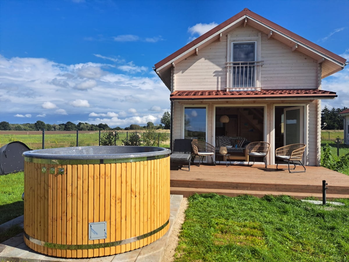 Zacisze Haven Wapnica Imagine relaxing in this romantic spot surrounded by nature, with access to the beach and breathtaking sunsets. The cottage is located on the edge of National Park and features a sauna, private hot tub, terrace covered with grapevines, and a cozy interior. In front of the house, there is a small garden full of herbs, tomatoes, and strawberries that guests are welcome to enjoy depending on the season. Enjoy nearby Międzyzdroje. Perfect for couples, families, and pets.