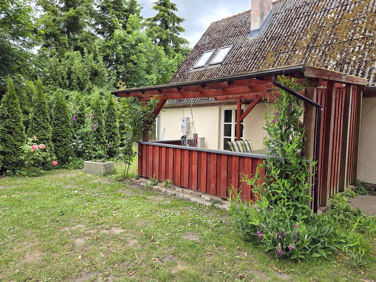 A charming place at the beautiful lake: perfect for a city getaway, romantic time for two or a weekend with friends & BBQ. Right at bike trail Blue Velo! House is very cosy, fully equipped, heated. The quiet zone on the area of Morzycko lake ensures a peaceful rest without the sounds of motorboats or scooters. Kayak and comfortable rowing boat are included in the price! Morzycko is an ideal lake for anglers. Forest paths near the house are perfect for walking or running. Come and check it out!