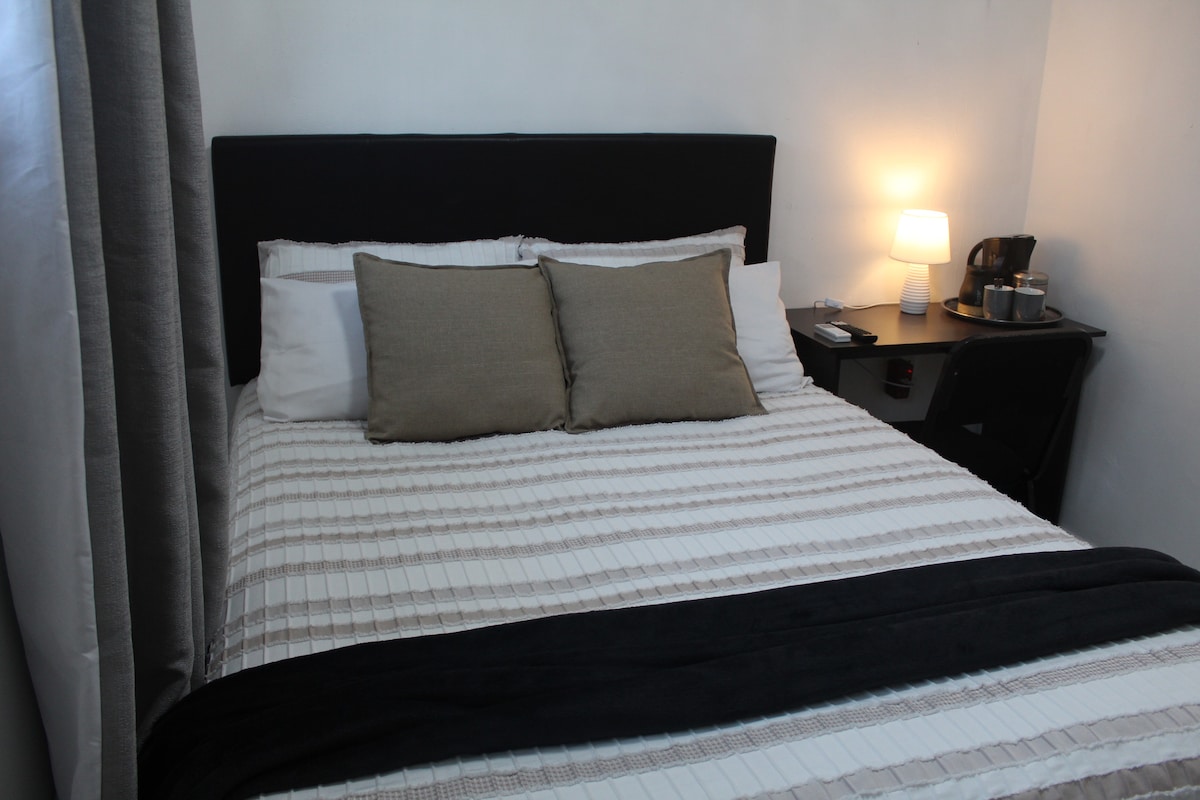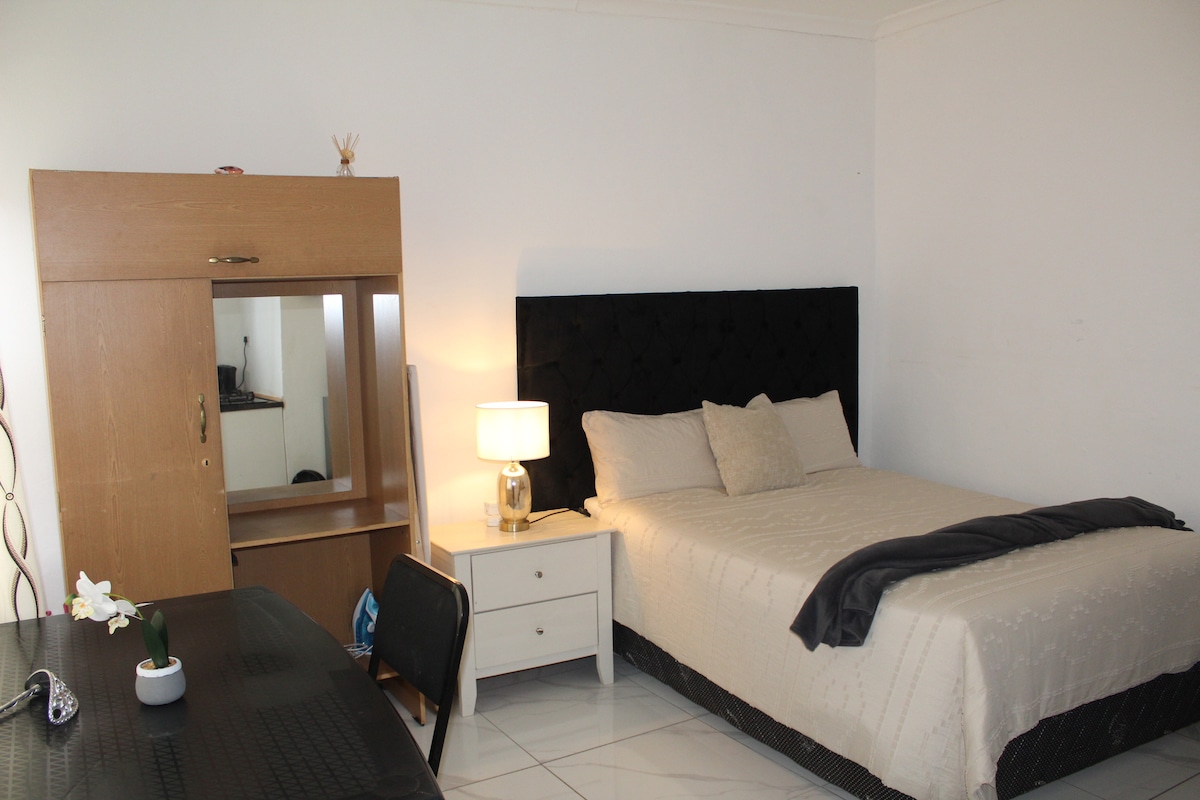 -Situated in Little Falls/West Rand. -Private entrance to Studio Suite. -INVERTER BACKUP & WATER BACKUP. -Free WiFi, TV with Netflix, Disney+, YouTube/Music, +more -On suite shower, basin and toilet. -1x double bed and 1x sleeper couch. -Kitchenette for food prep & wash-up. -Fridge, microwave, kettle, toaster, iron, heater (in Winter and cold spells), fan & hairdryer Cutlery & Crockery. -11+ popular fast food restaurants & Clearwater Mall within a 2km radius. Safe FREE parking on premises.