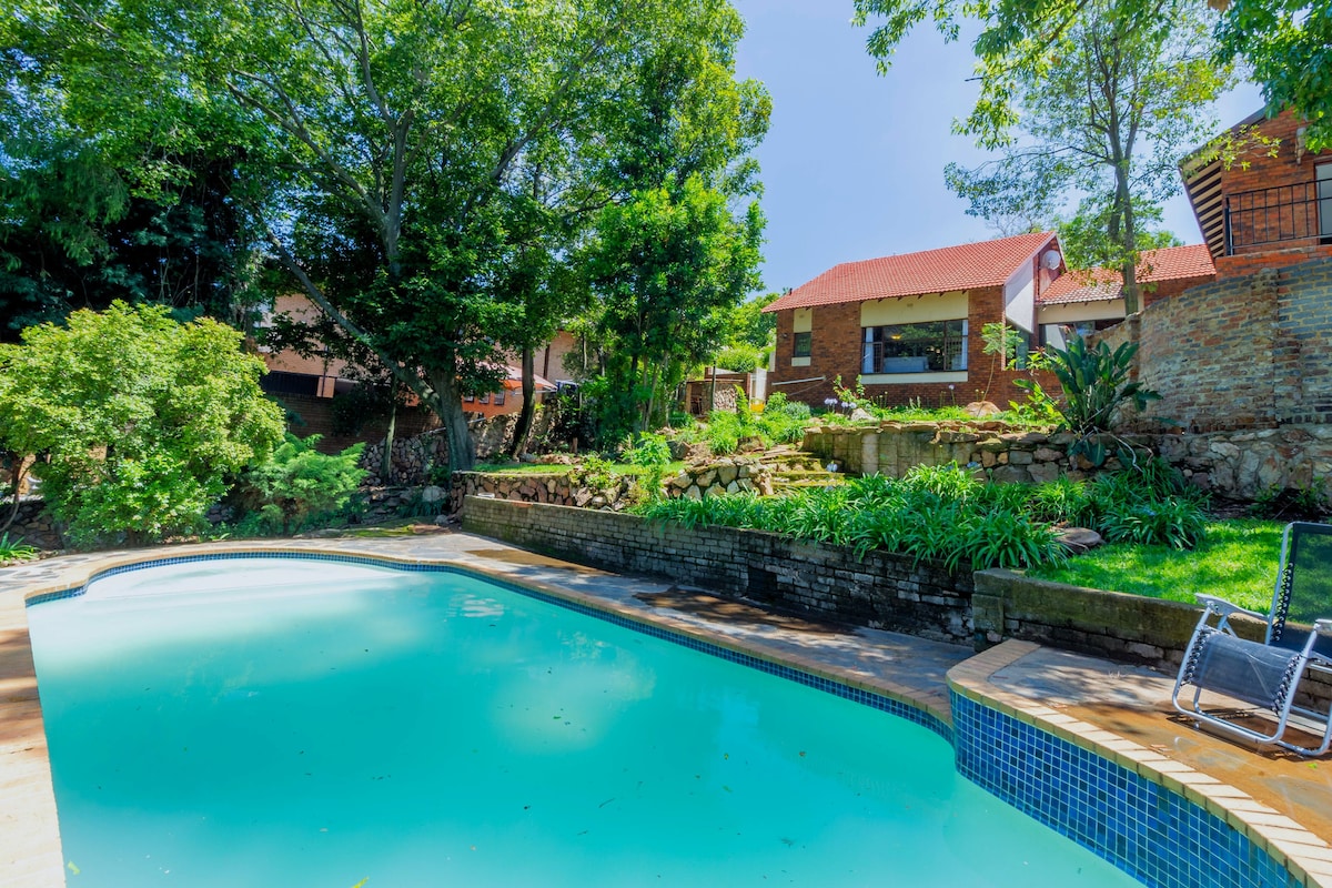 A private self-contained lock-up and go guest suite with unrestricted 24/7 access. 2.5 km from Unisa, 10,2 km from Monash University, 12,3 km from University of Johannesburg (UJ) and 16 km from University of the Witwatersrand (Wits). Guests do not have to share any spaces within the home with any members of the household as it is a totally independent unit even though it is situated within the main house. The only shared areas are outside in the garden and at the pool.