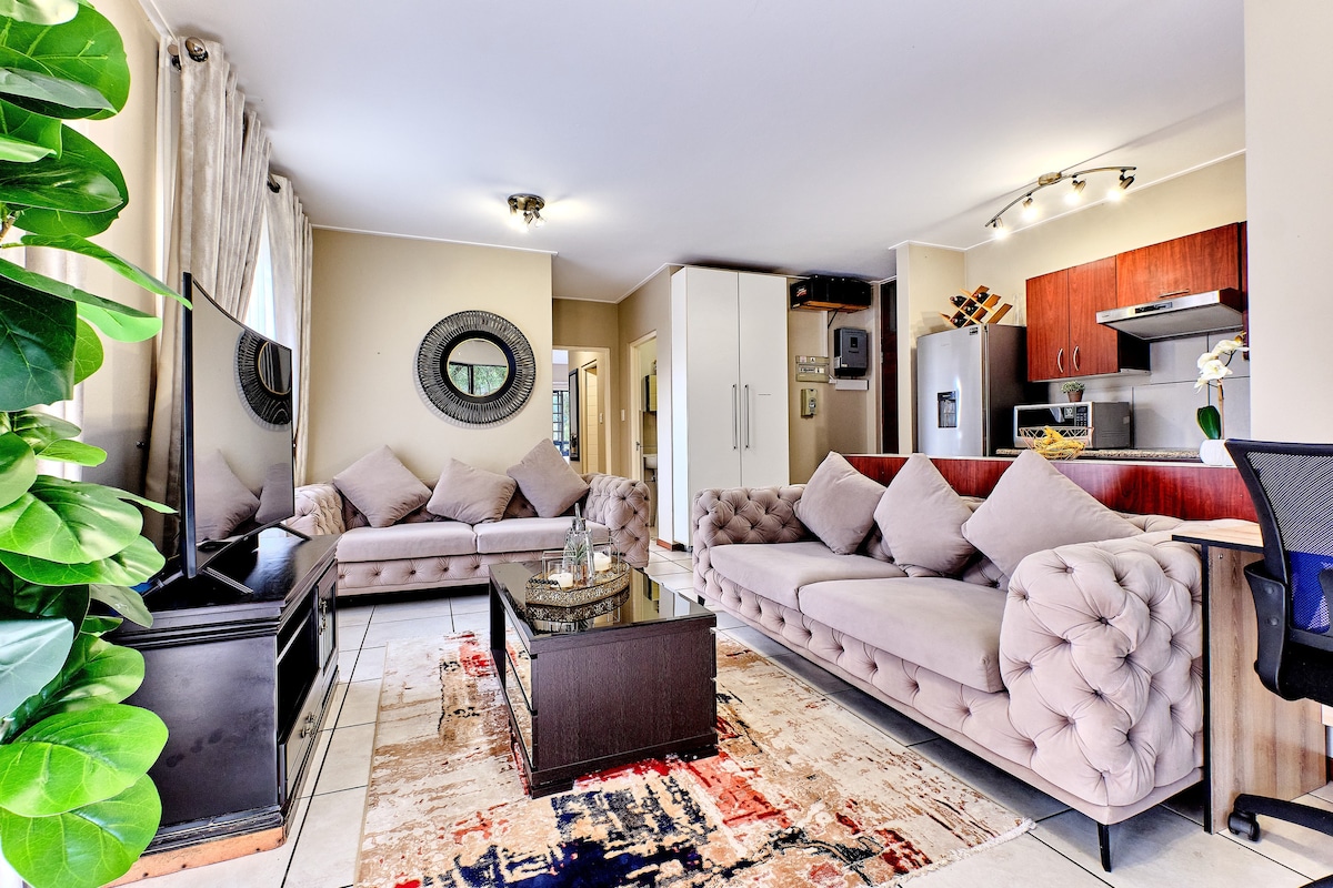 * Watch the majestic Johannesburg North Sunset * Go for a round of golf * Challenge friends for a game of tennis * Take a walk on the golf course alone or with the kids followed by drinks & a steak at the club house. * Treat the kids to a full play area * Cool down and braai in the various communal pools, all this without leaving the estate! * Flat also perfect for working from home with a compact table that doubles up as a dining table. * Doctors, restaurants, malls, etc. close by