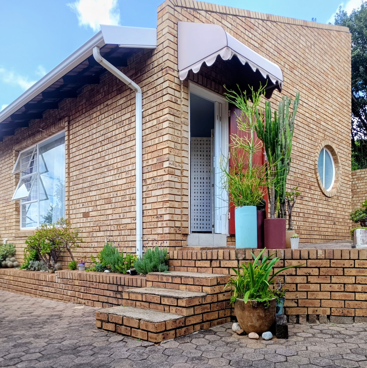 A sunny and spacious studio garden apartment, set alongside the original farm house of Fairland, which was once a farm and is now a leafy green suburb in the shadow of Northcliff ridge. 40 sq m of fun and practical design, aimed at those who are heading out west to explore the Cradle of Humankind, Magaliesburg and Hartebeespoort Dam, but also east to discover urban Jo'burg.